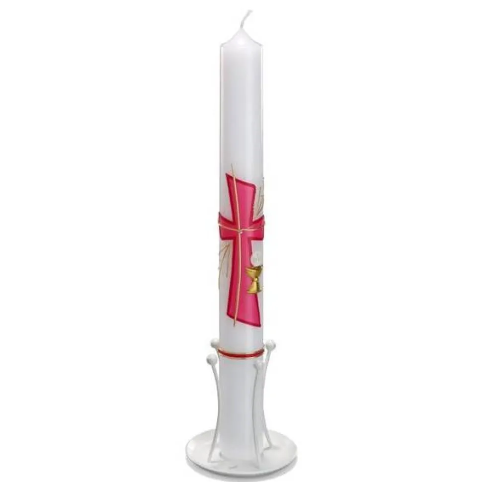 Er ist aus Metall, hat einen Dorn und flexible Stäbe, die einen sicheren Halt der Kerzen gewähren.