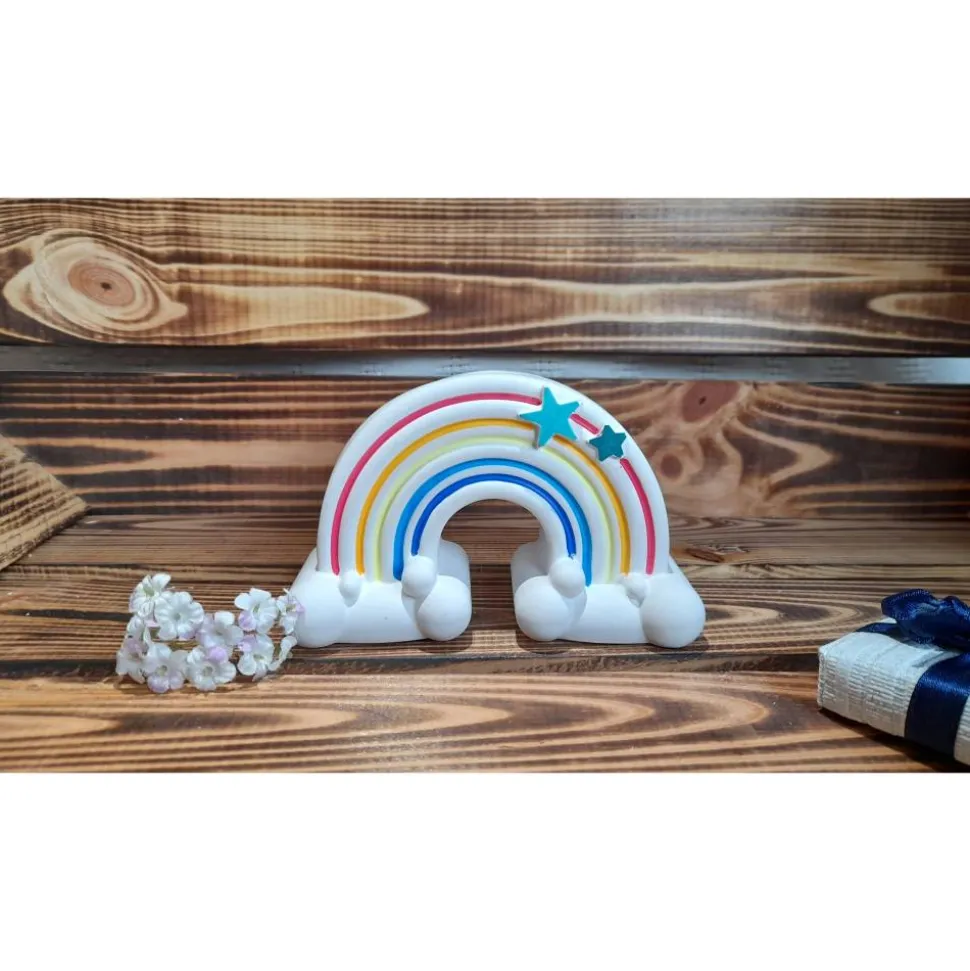 Regenbogen mit Wolke und Sternen: ca. 12,5cm x 5,0cm x8,0cm