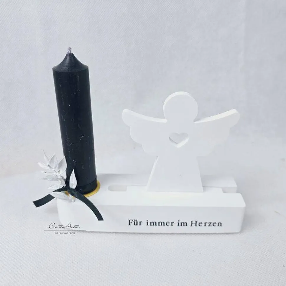 Den Stabkerzenhalter erhälst du hier als komplettes Set bestehend aus dem Kerzenhalter und dem Engel-Einschieber.