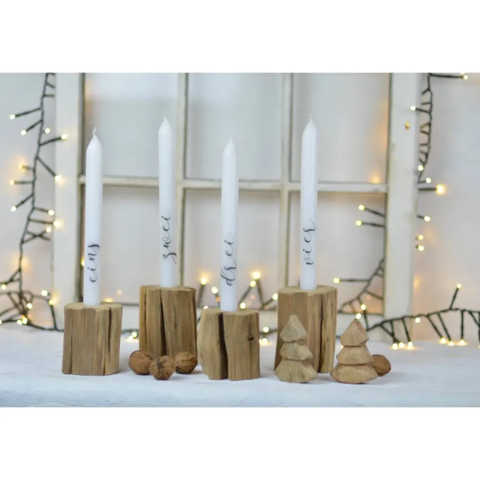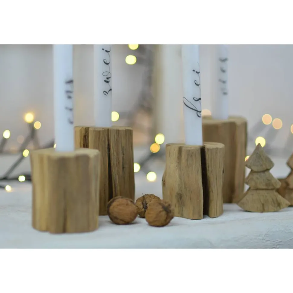 Es gibt die Kerzenständer in der Höhe 8 oder 9 cm, die Bohrung ist für eine normale Stabkerze geeignet.