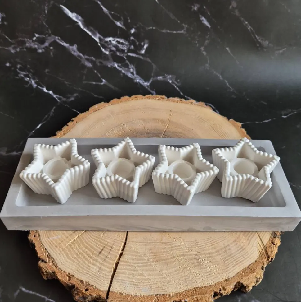 Setze ein stilvolles Statement auf deinem Tisch und genieße den Advent mit einem langlebigen, wiederverwendbaren Kerzenteller aus Gießbeton in moderner Sternform.