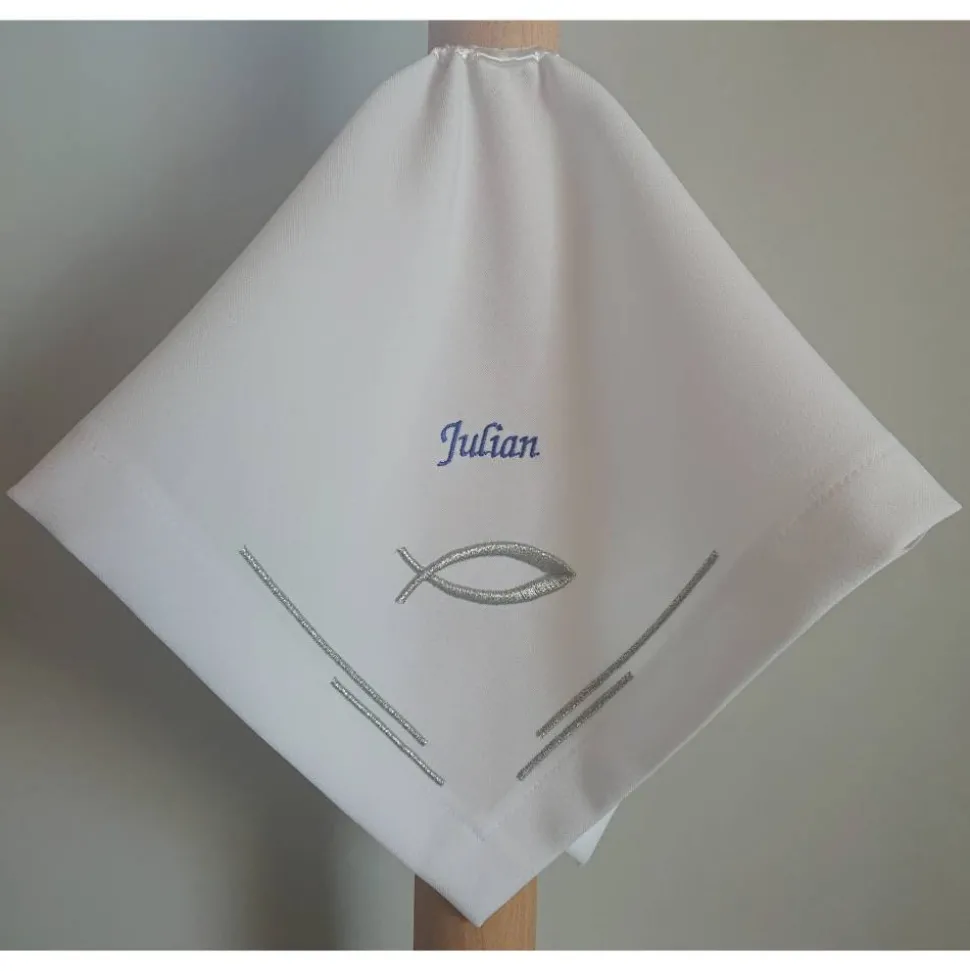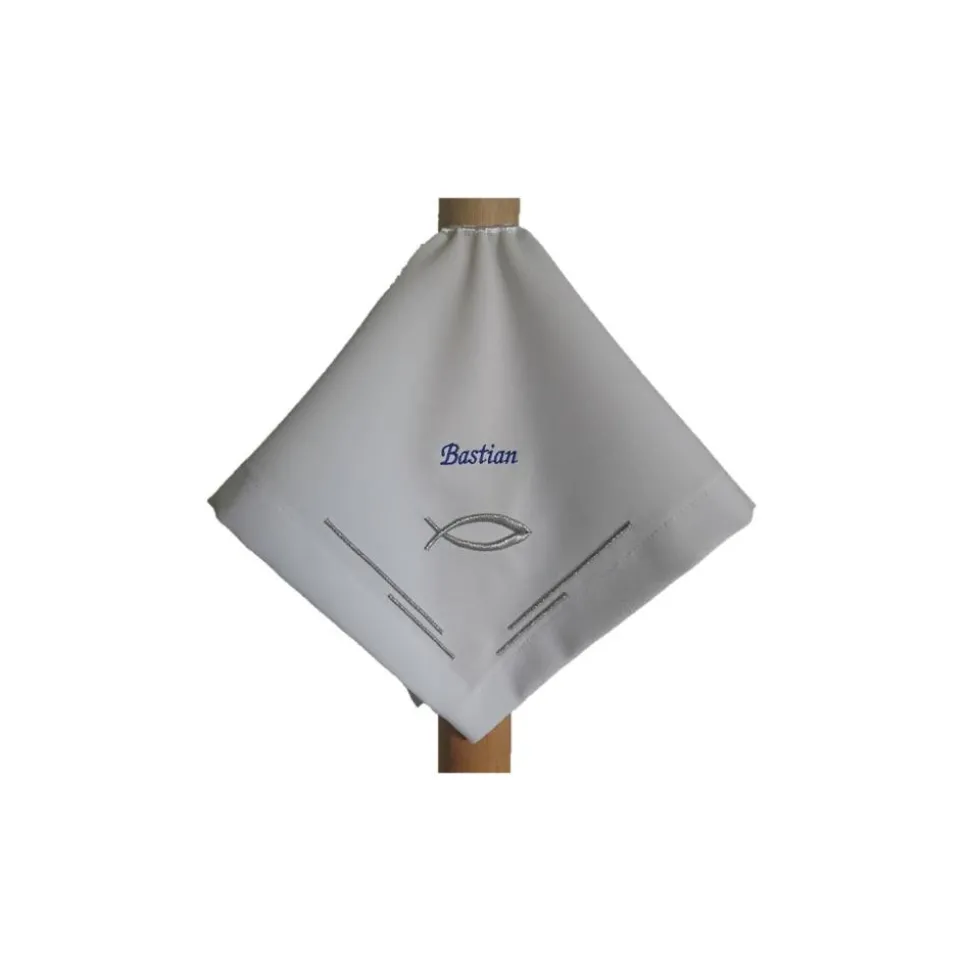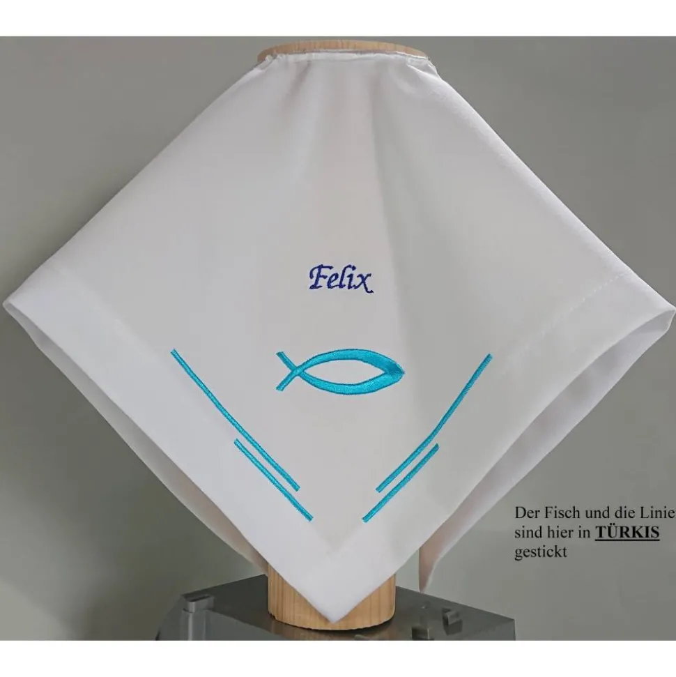 – Name, Fisch und die 4 Linien können in allen Farben gestickt werden.