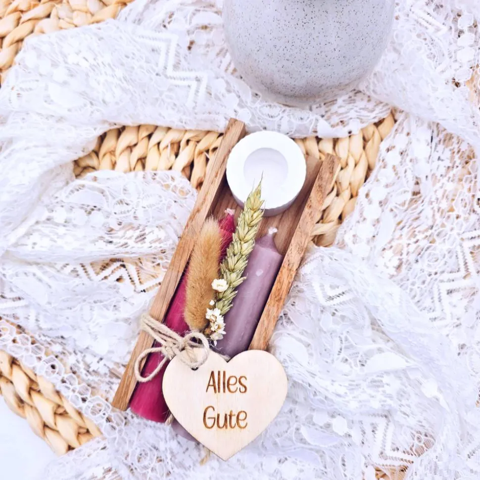 Mach Deinen Freunden, der Familie oder einfach Dir selbst eine Freude mit unserem liebevoll zusammengestellten Geschenkset Kerzen! Dieses Set verbindet stilvolle Wohndeko mit einer herzlichen Botschaft – perfekt für Geburtstage, als Zeichen der Freundschaft oder als kleines Mitbringsel.