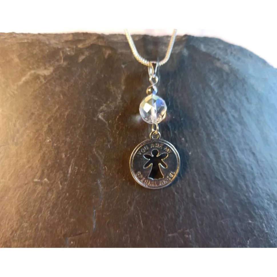 Der Anhänger besteht aus versilbertem Metall und ist mit dem liebevoll eingravierten Text „You are my special angel“ sowie einem ausgestanzten Engel versehen. Eine böhmische, transparente, facettierte Glasperle (feuerpoliert, irisierend) rundet das Design ab.