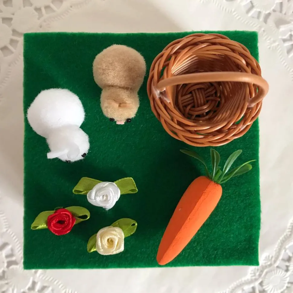 Zu Ostern Geld verschenken, für Kinder oder Erwachsene, ist mit diesem liebevoll gestalteten Geldgeschenk ein echter Blickfang. Die Osterhasen sitzen auf der grünen Wiese neben dem Osterkorb, in den Sie nach Belieben sogar noch ein paar kleine Ostereier packen können. Abgerundet wird die Szene durch verschiedenfarbige Röschen und eine Karotte.