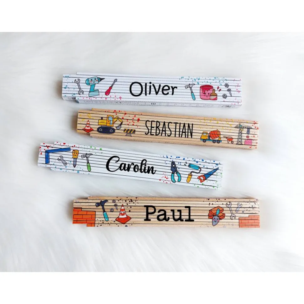 Entdecke den personalisierbaren Kinder Meterstab Baustelle – das ideale Geschenk für kleine Handwerker, kreative Mini-Bauherren und fleißige Helfer. Der bunt bedruckte Zollstock ist nicht nur ein hochwertiges Werkzeug, sondern auch ein liebevoll gestaltetes Erinnerungsstück.