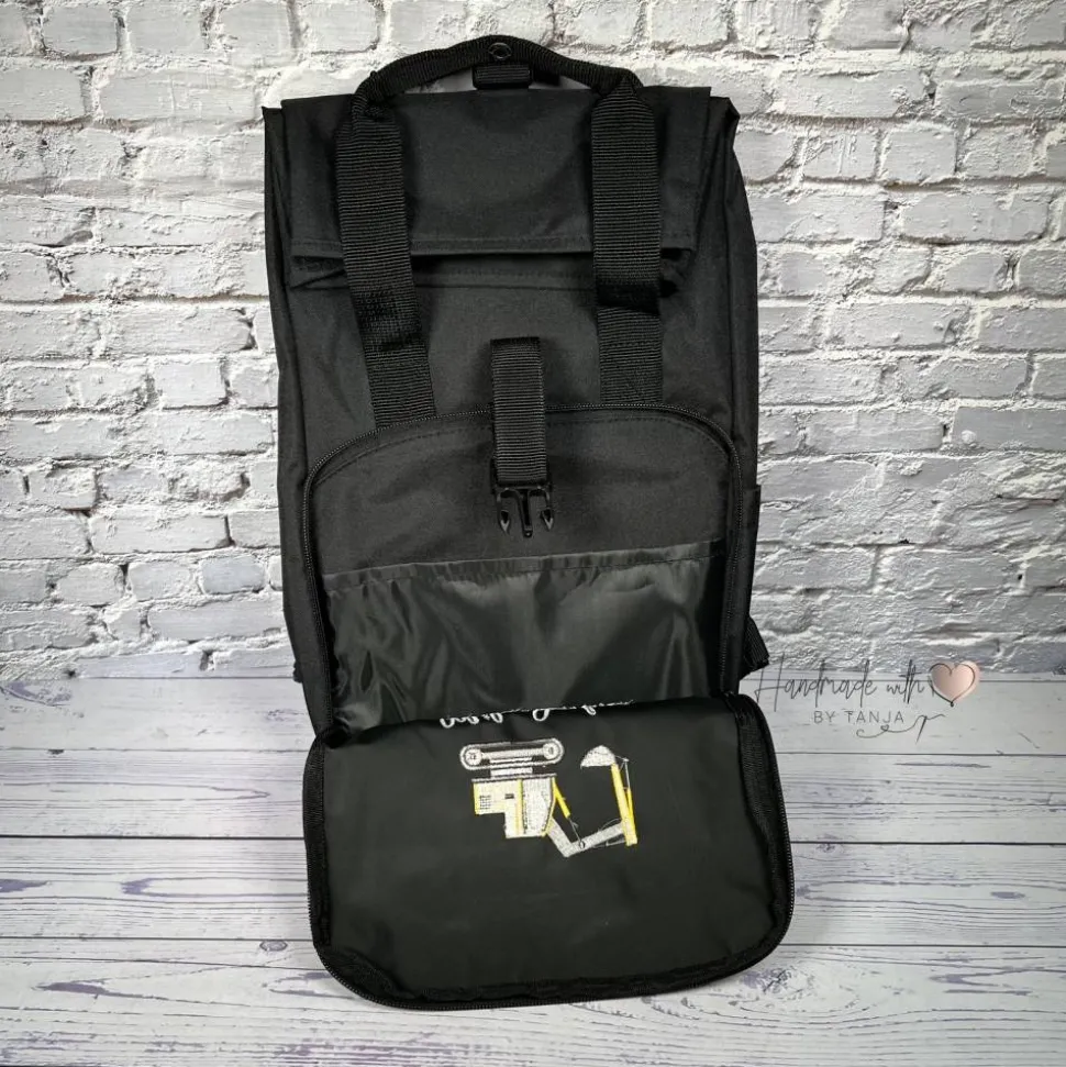 Dieser tolle Rolltop Rucksack wird von mir mit einem coolen Bagger und deinem Wunschnamen bestickt und ist ideal für Ausflüge, den Kindergarten oder die Tagesmutter.