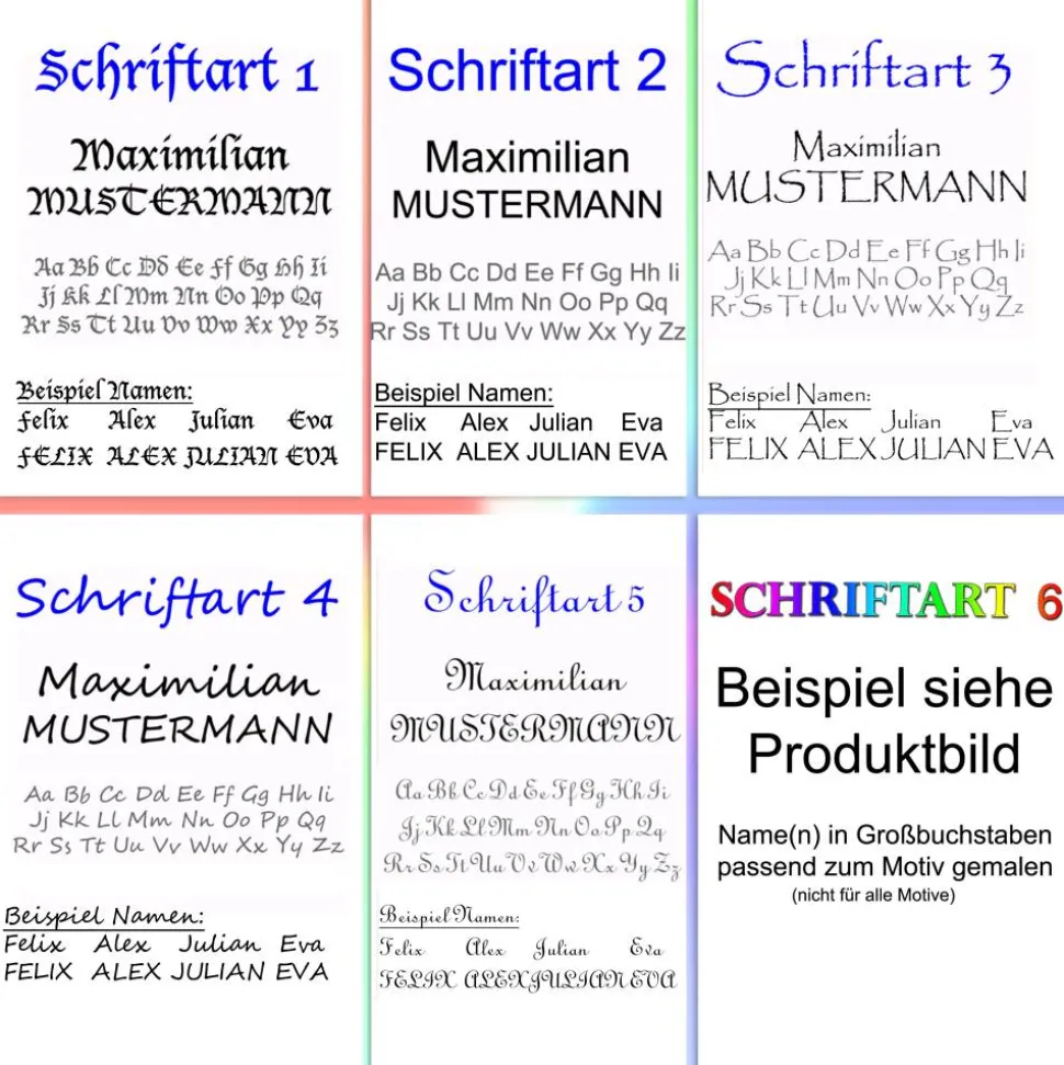 Sie können die Schriftart Ihrer Personalisierung natürlich ebenfalls selbst bestimmen.