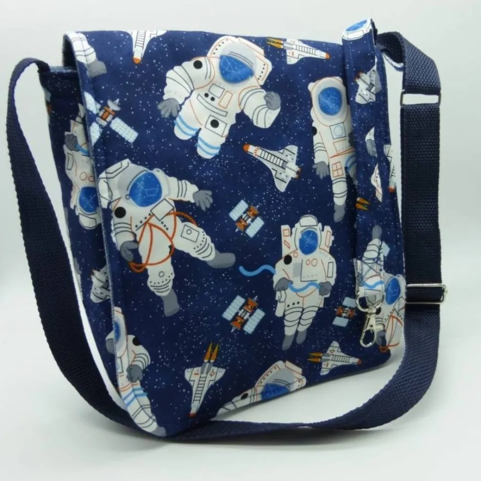 Die Tasche besteht aus hochwertigem Baumwollstoff mit Astronauten und Space Shuttle.