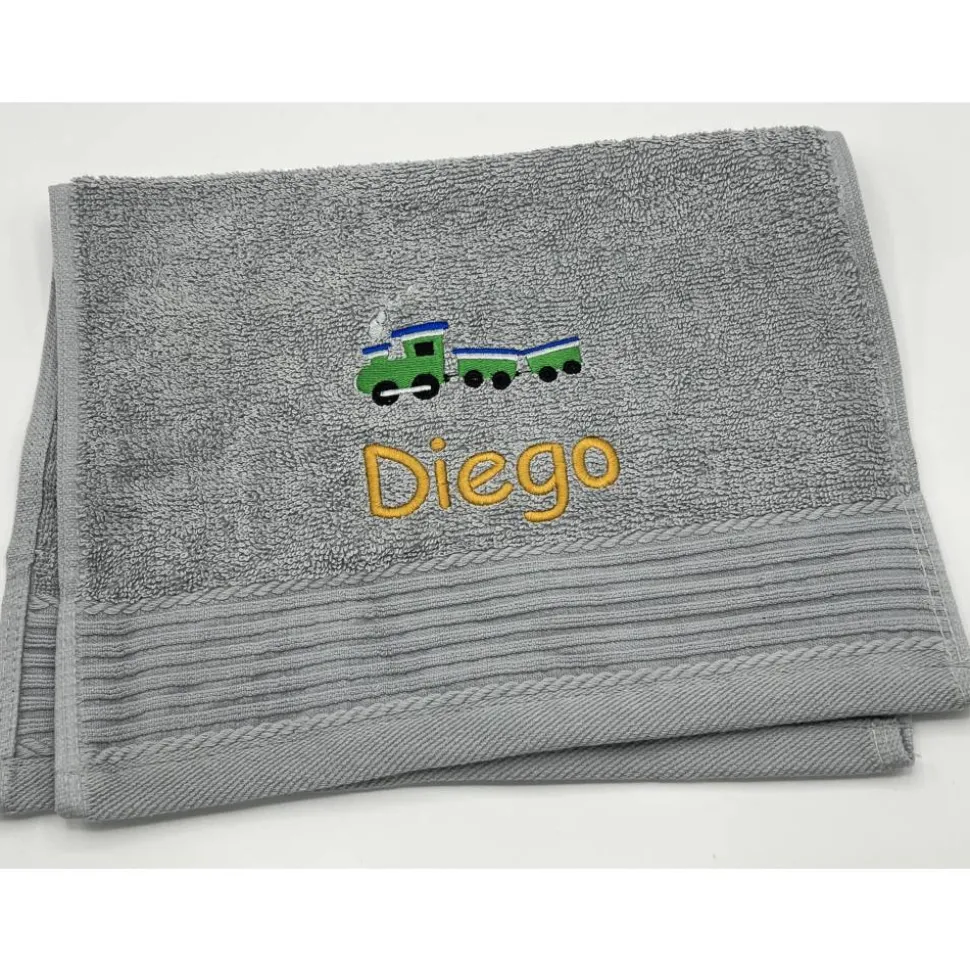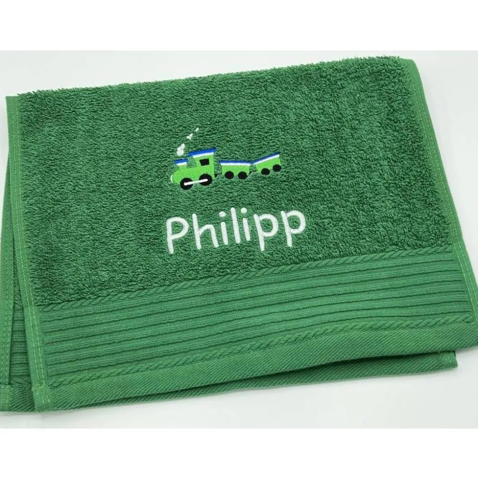 Gästehandtuchfarbe, Stickmotivnummer, Schriftart und Namen .