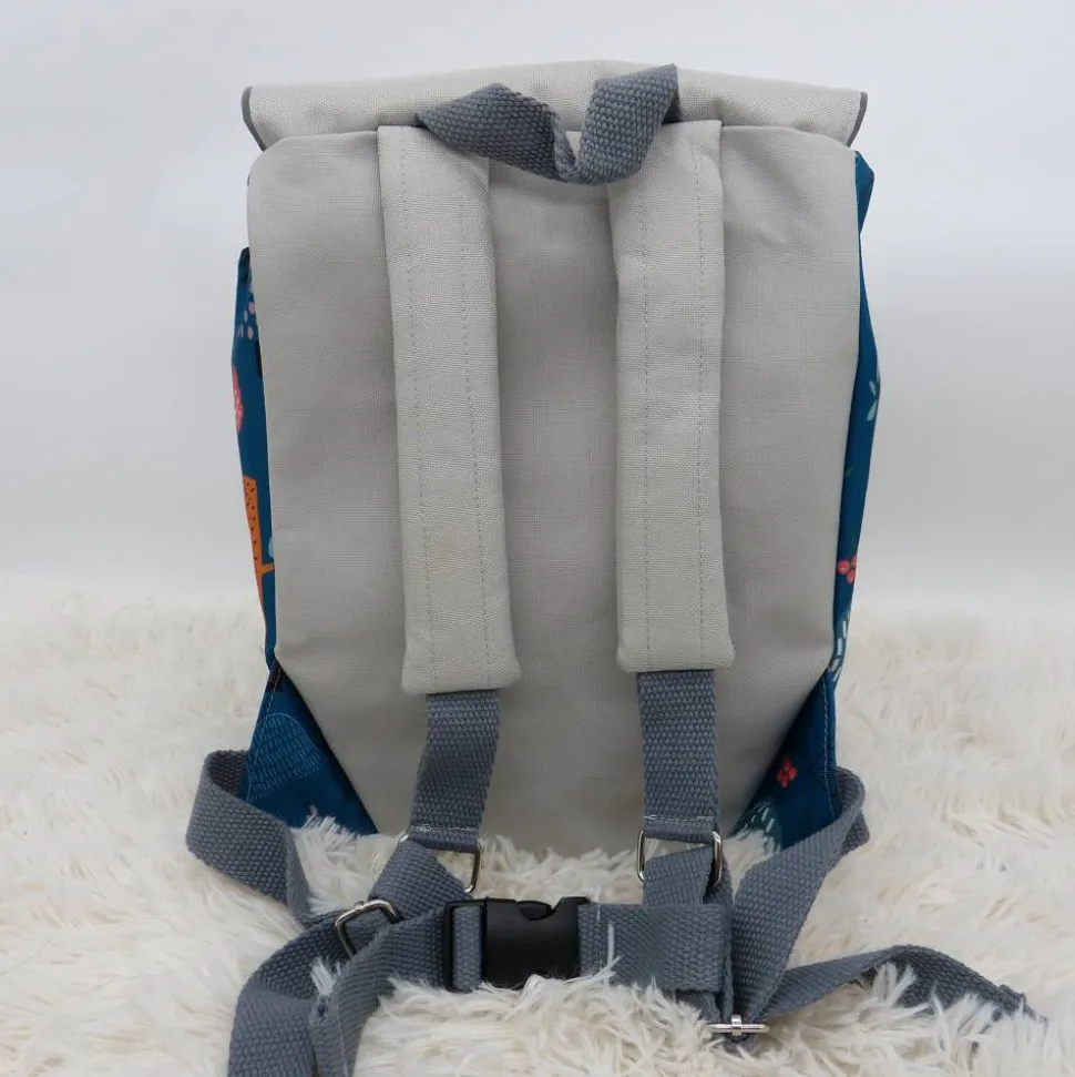 Verschlossen wird der Rucksack mit einer Kordel und einem Magnetknopf – kinderleicht zu bedienen, aber sicher genug, damit nichts verloren geht. Dank seiner durchdachten Größe passen neben der Brotzeit auch Wechselkleidung oder kleine Lieblingsspielzeuge hinein.