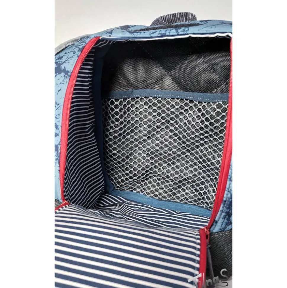 Innen ist eine Innentasche und ein lustiges Baustellenfutter. Die Gurte sind gepolstert und verstellbar.
