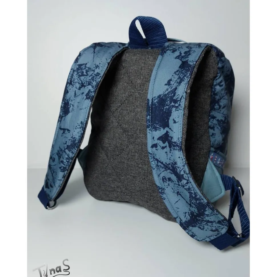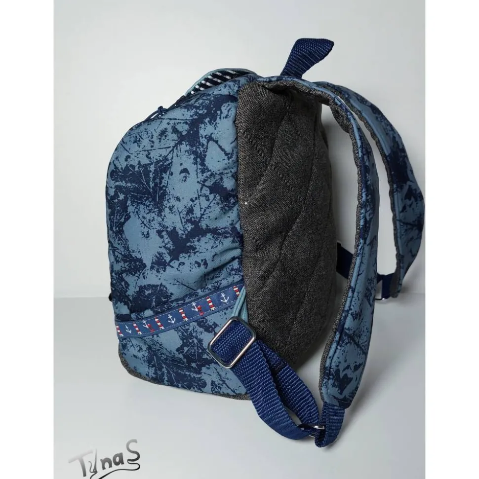 Wie man auf dem letzten Foto sieht, kann ich ein Lederlabel mit dem Namen des Kindes herstellen und auf den Rucksack nähen. Hier für die Fotos habe ich das provisorisch mit dem Namensschild LEON gemacht.