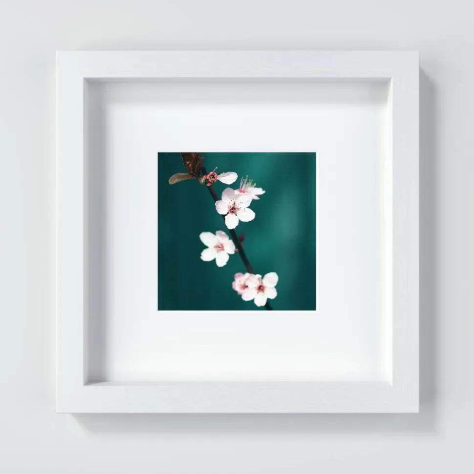 Ich persönlich mag diese kleinen quadratischen Prints gerne im weißen Rahmen mit Passepartout, auch günstig im Möbelhandel erhältlich (z.B. Ribba (weiß) oder Hovsta (Birke) von Ikea für das Format 13 x 13 cm und Lomviken von Ikea für das Format 20 x 20 cm).