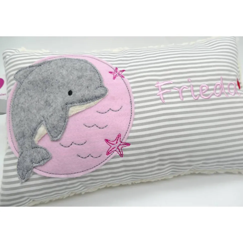 Aufwendig und mit viel Liebe zum Detail genähtes und gesticktes Mini-Kissen