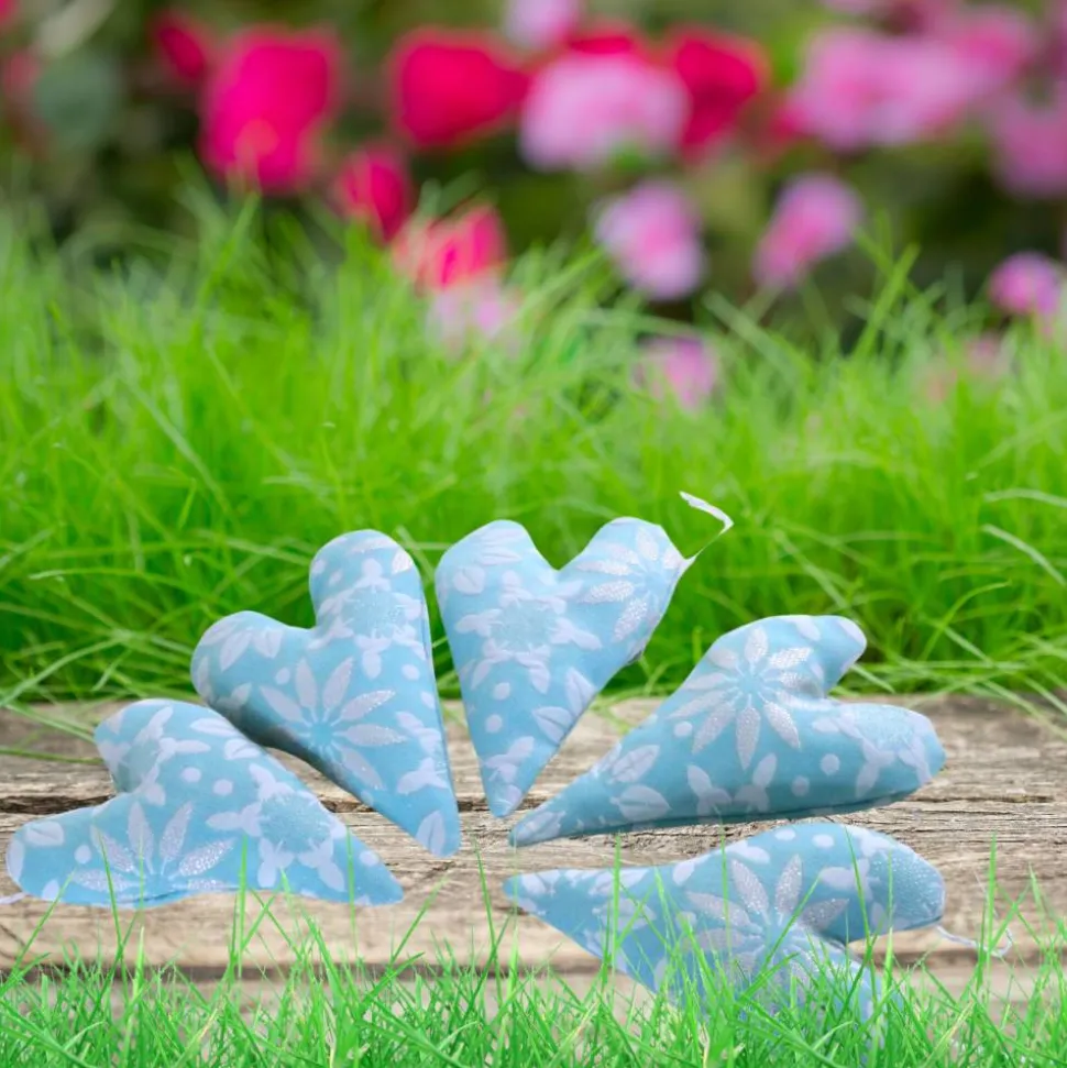9x kleine Stoffherzen mit Aufhänger und Perle – ca. 14 cm x 9 cm