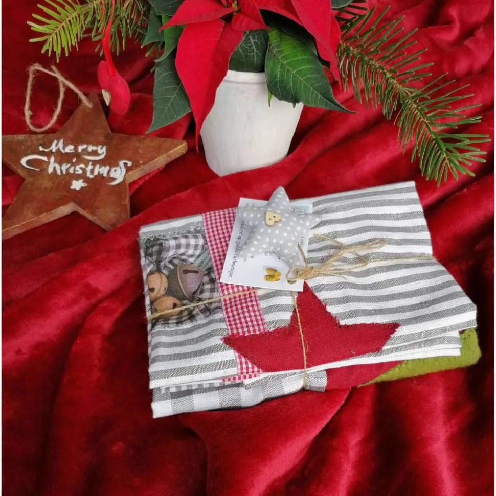 mit weihnachtlichen Applikationen