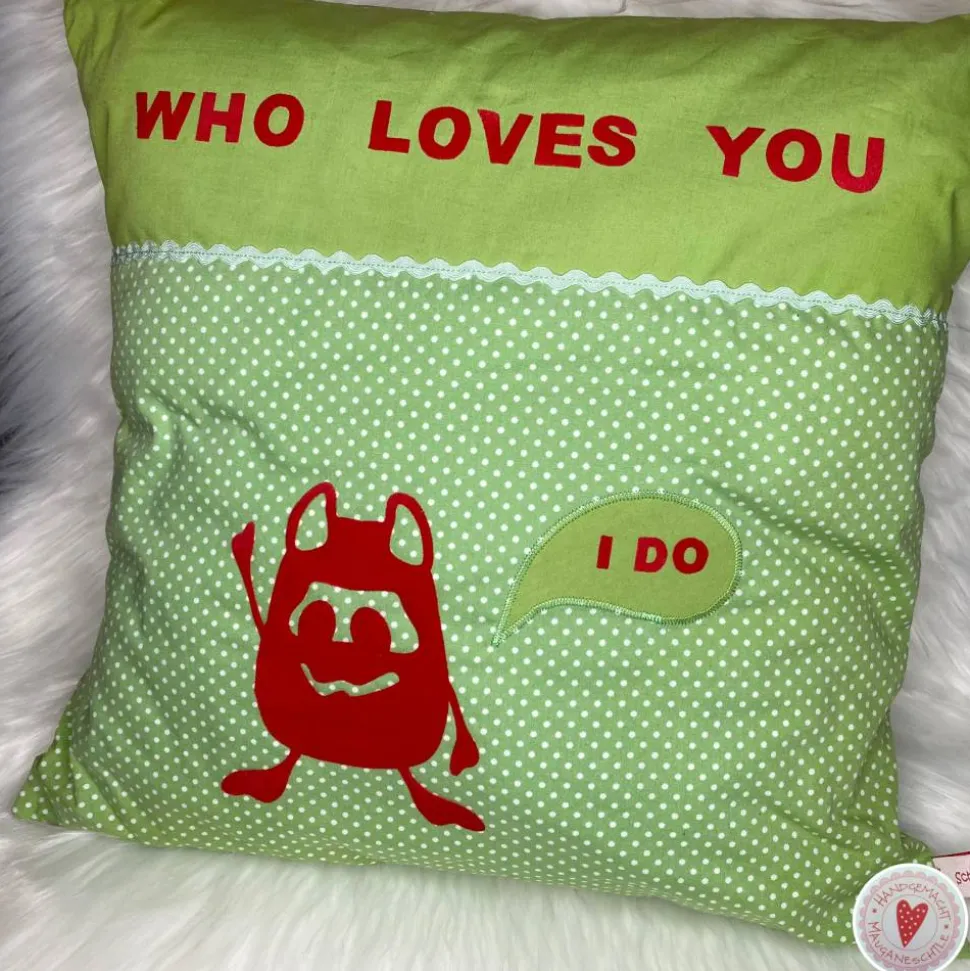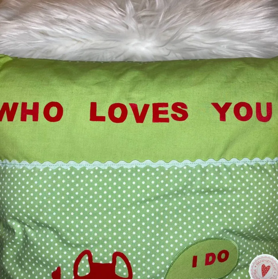 Kissenhülle / „Who loves you“ / 40x40cm / grün