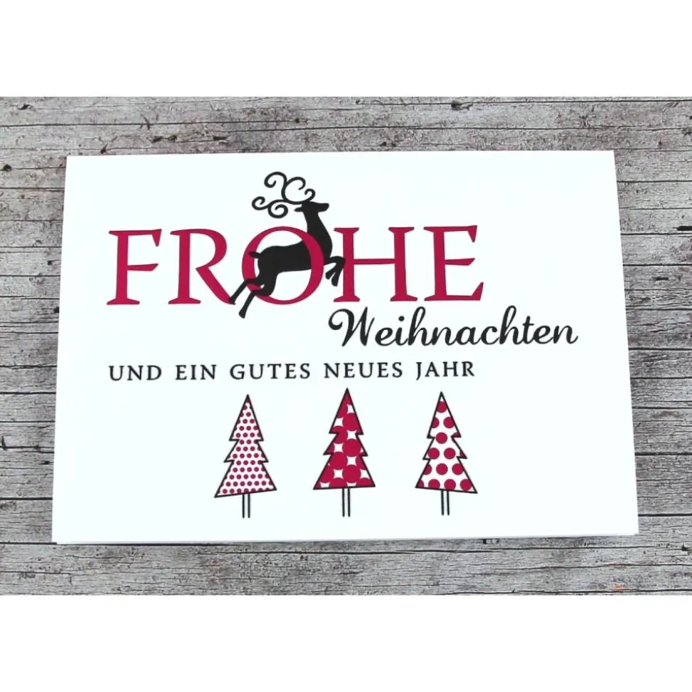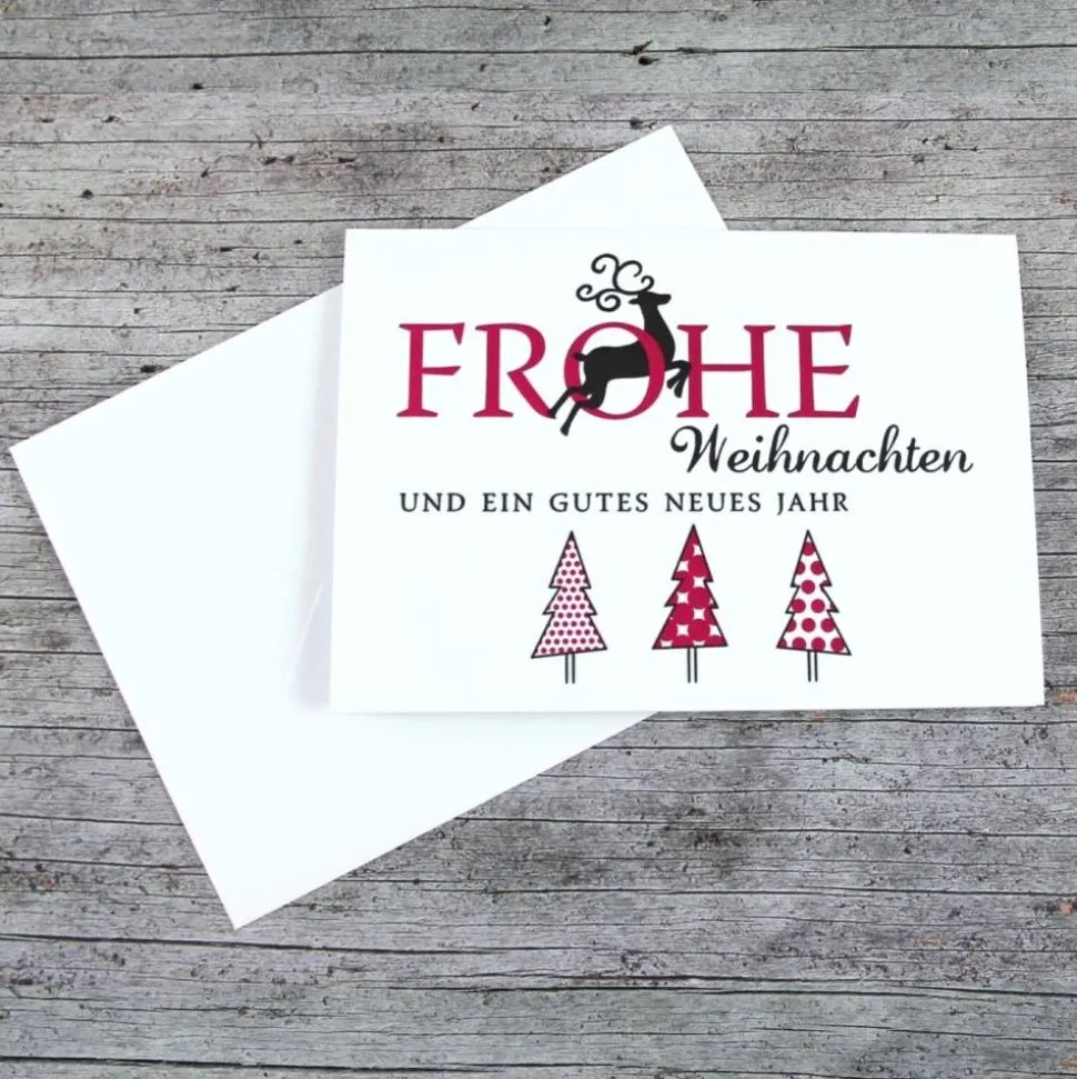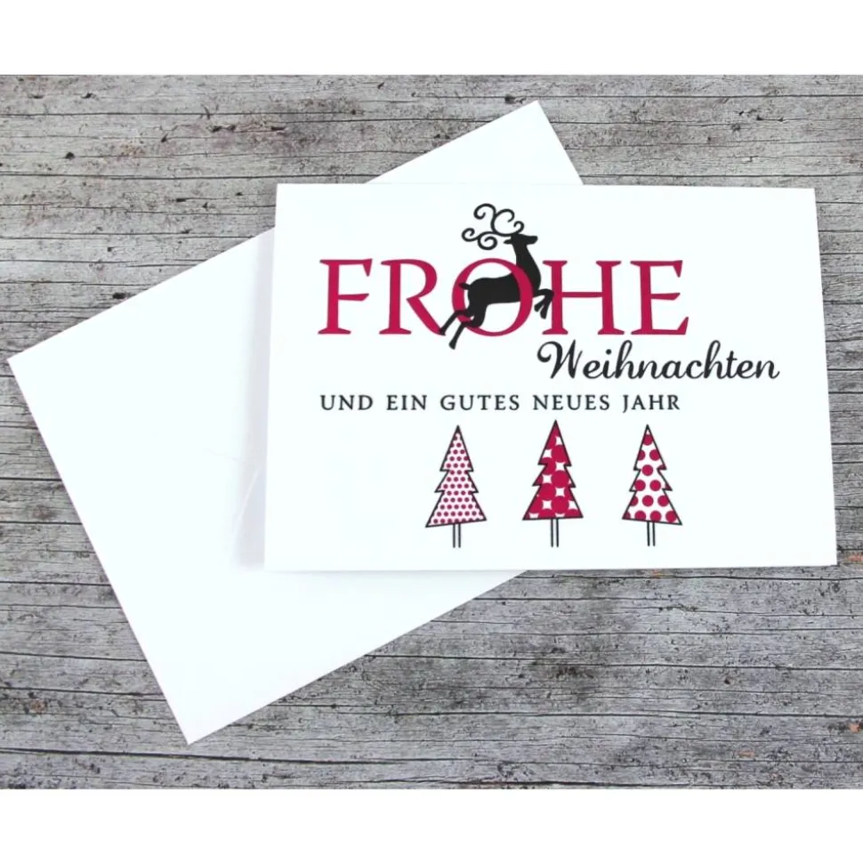 Grußkarte 3Bäume+Hirsch mit Kuvert und Einlegefaltblatt
