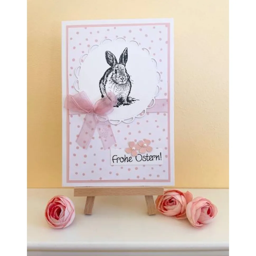 Den Hasen habe ich auf einen weißen, ausgestanzten Kreis aus Tonpapier gestempelt.