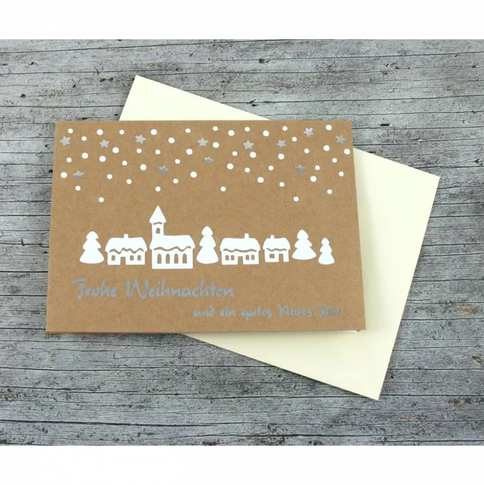 Klappkarte Winterdorf mit Kuvert und Einlegefaltblatt,