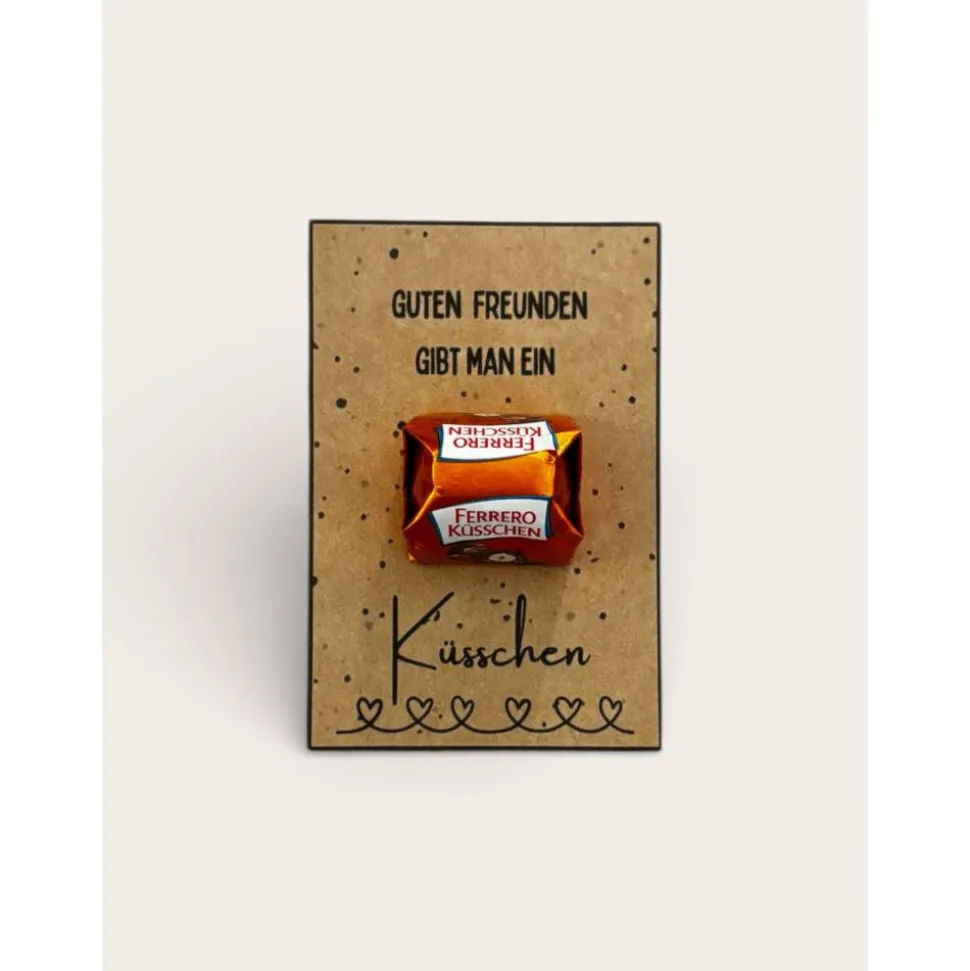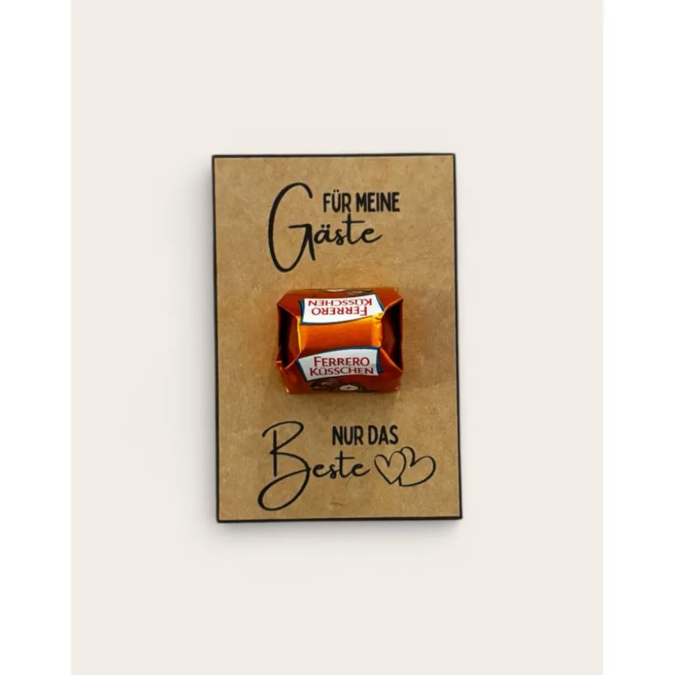 Überrasche deine Gäste mit liebevoll handgefertigten Kraftpapier-Kärtchen (8,5×5,5 cm) inklusive Ferrero Küsschen!