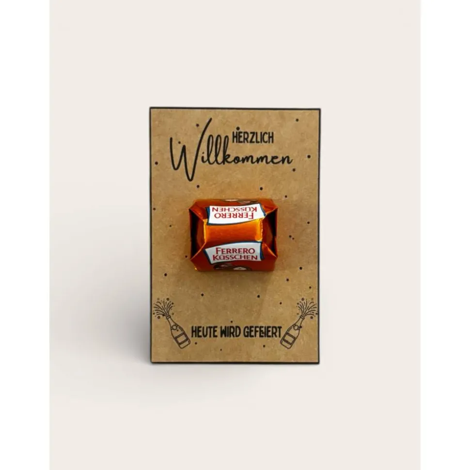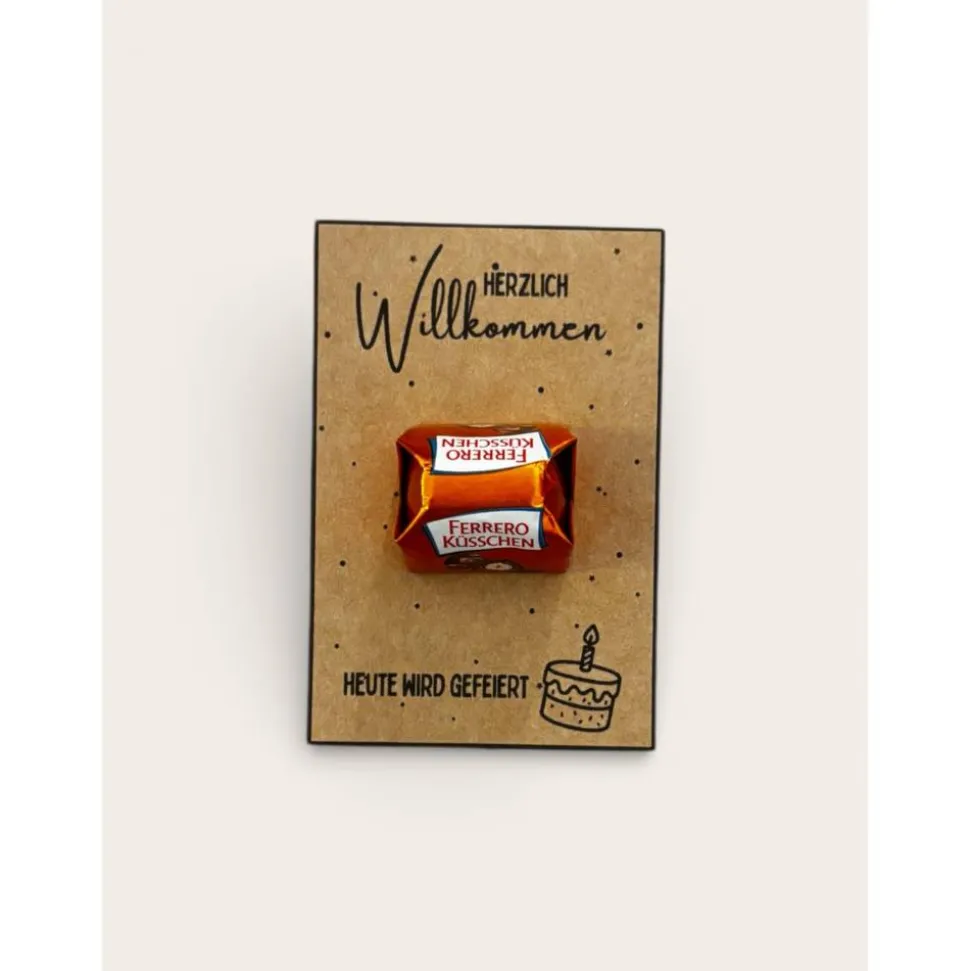 Suchst du nach einer besonderen Kleinigkeit, die Freude bereitet? Diese hochwertigen Kraftpapier-Geschenkkärtchen sind die perfekte kleine Aufmerksamkeit für Gäste, Mitarbeiter, Freunde oder Kunden. Jedes Kärtchen wird mit viel Liebe gestaltet und mit einem süßen Ferrero Küsschen versehen – der ideale Gruß für jede Feier.