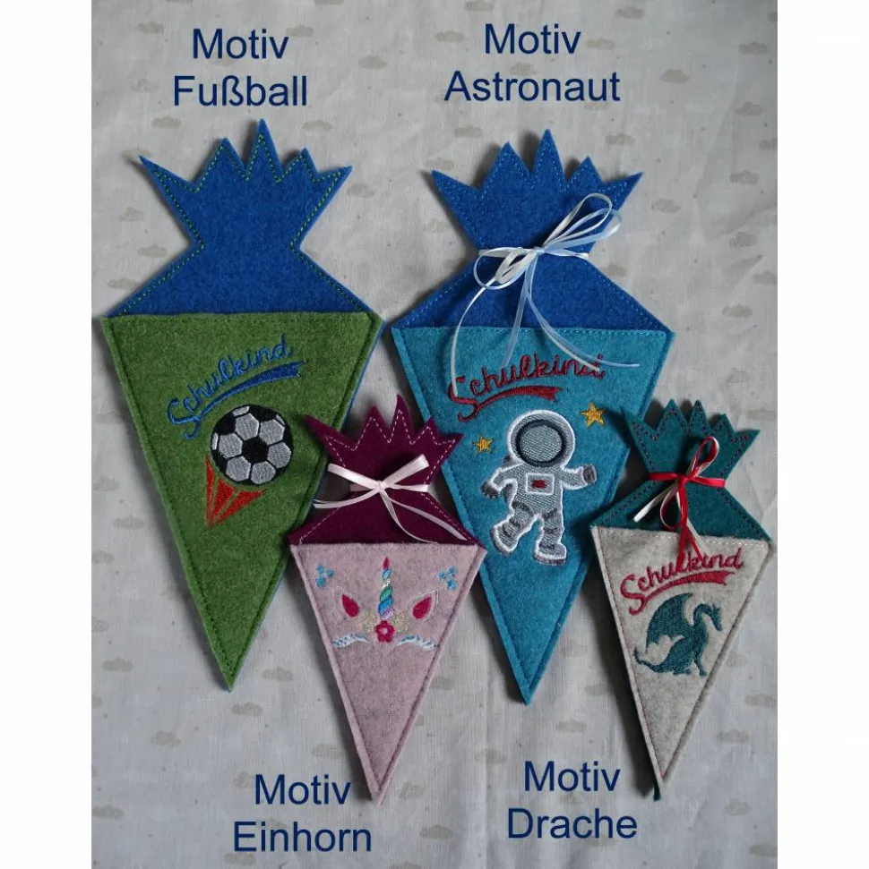 Kleine bestickte Schultüte aus Wollfilz *individuell nach Wunsch angefertigt