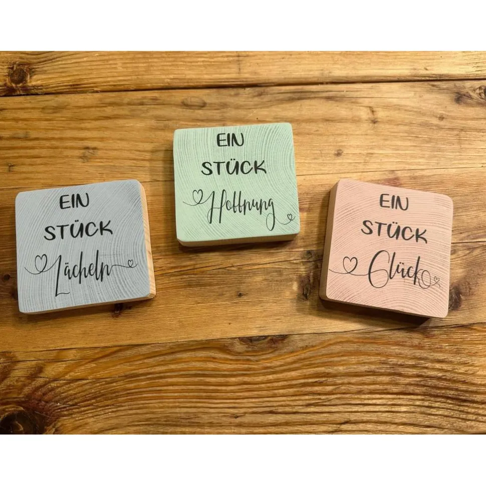 - 3er-Set Holzquadrate nach Wahl (frei kombinierbar oder mit Wunschtext)