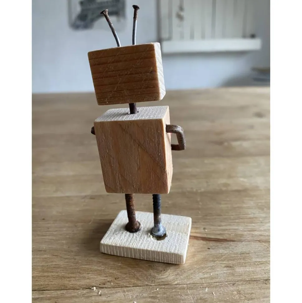 Diese kleine Figur besteht aus Altholz und alten Nägeln, das Herz haben wir gekauft.