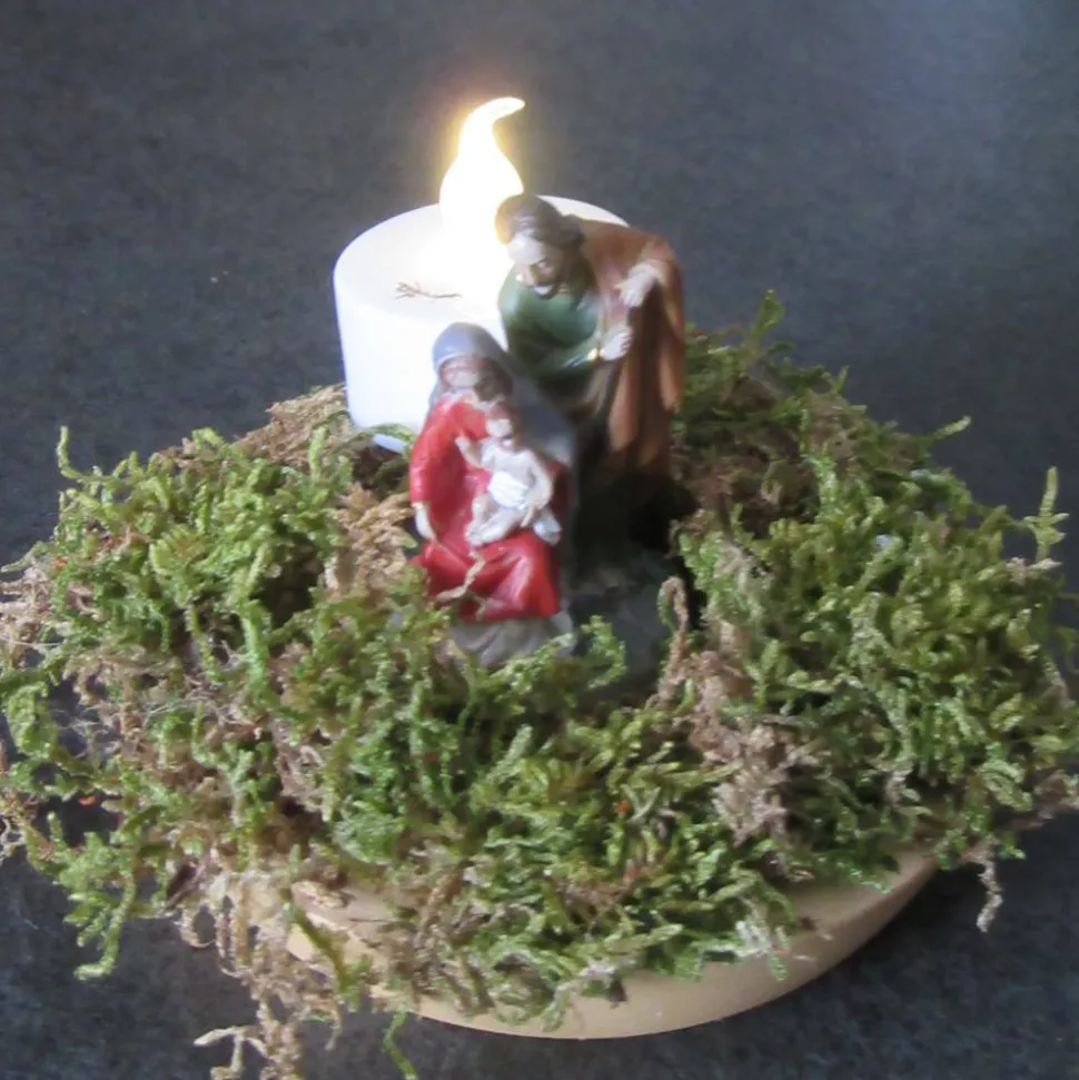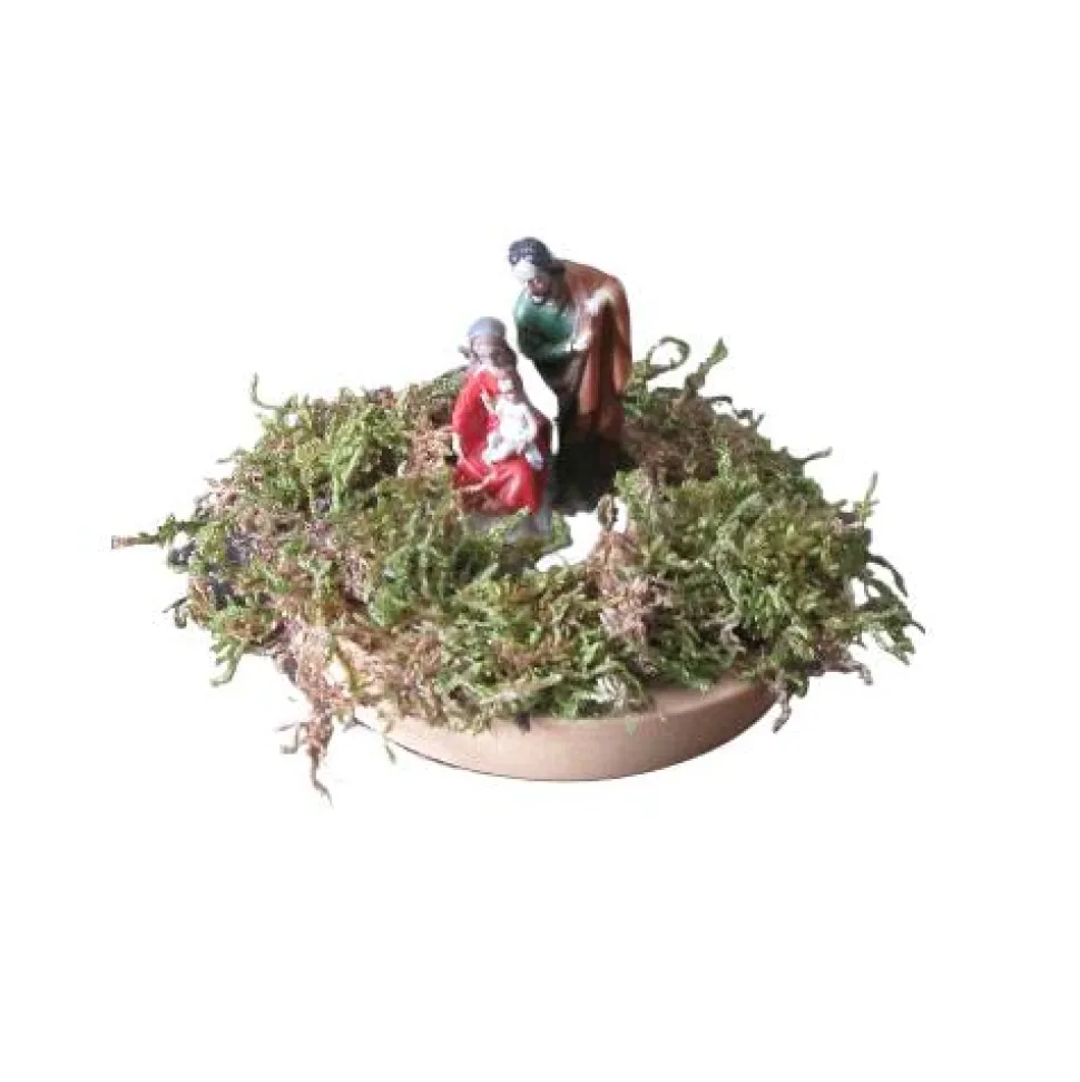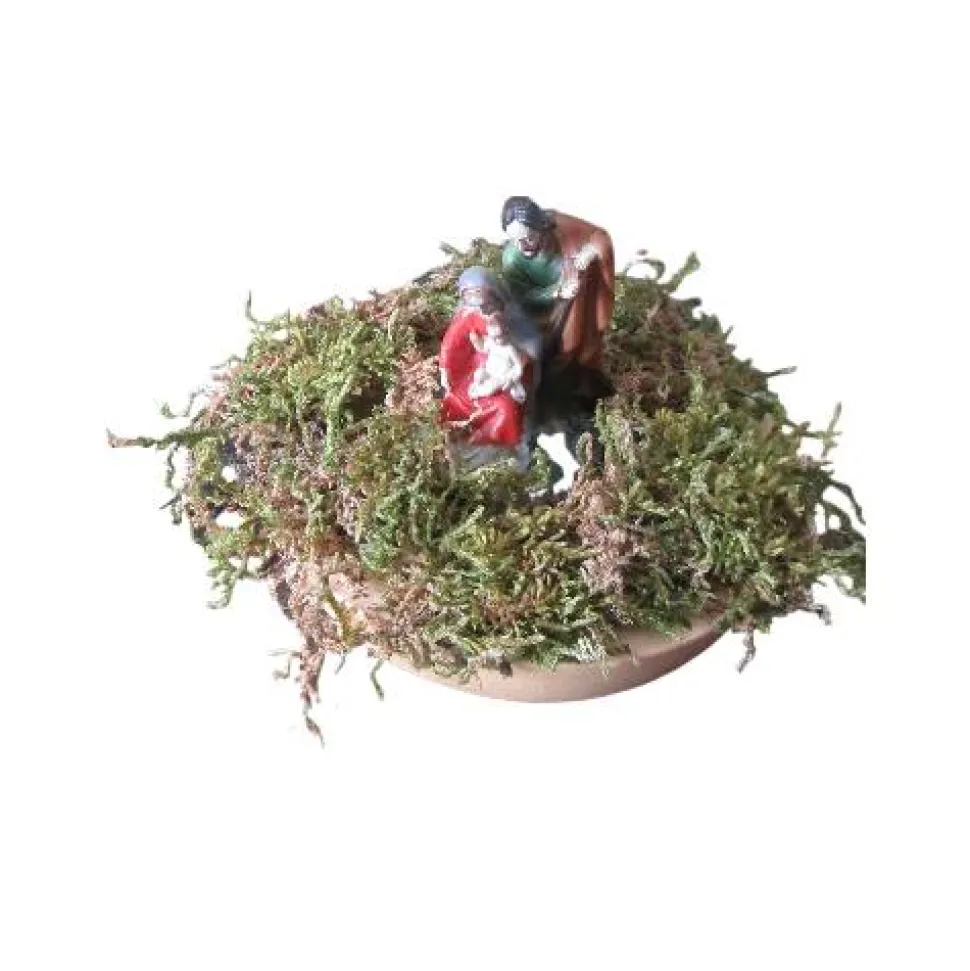 Das Moos und die Figuren sind auf einem Holzsockel mit Leim befestigt, während das LED-Licht (Batterien enthalten) individuell verstellt werden kann.