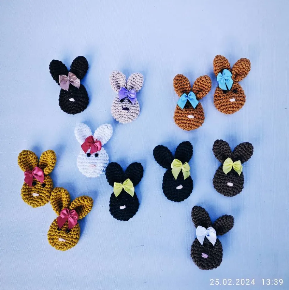 schöne kleine Osterdekoration gehäkelt, die kleinen Knopfaugen sind aufgeklebt, der Mund gestickt