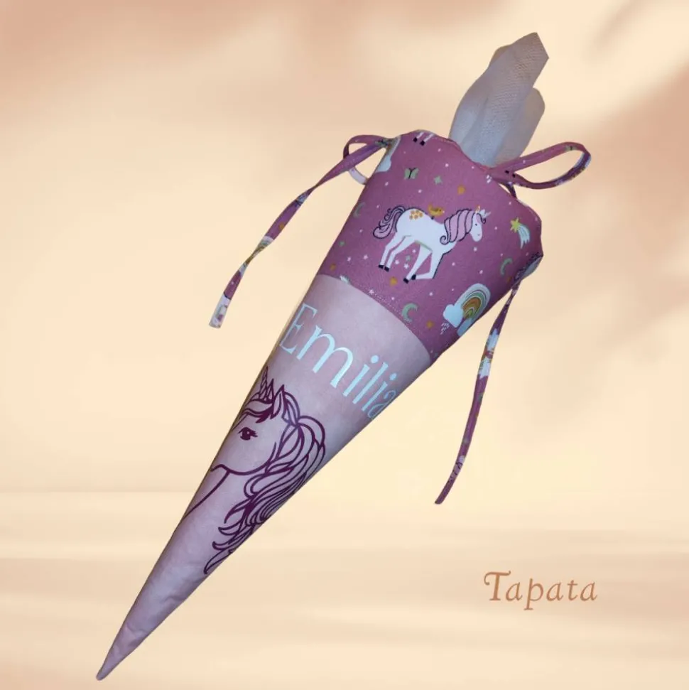 Die Schultüte kann auch als große Tüte (70cm) angefertigtwerden. Wichtig: Bitte hierzu gesondert Kontakt mit mir aufnehmen, da der Stoffnur in begrenzten Umfang vorhanden ist. Eine Spezialanfertigung wird dann aufAnforderung eingestellt.
