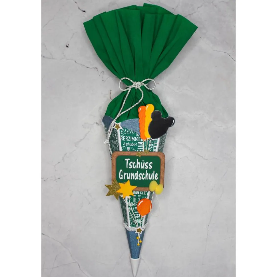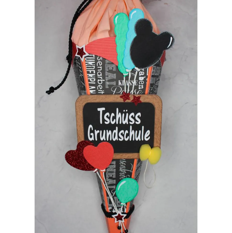 Diese kleine Schultüte ist ein ideales Abschiedsgeschenk zum letzten Grundschultag, zum Schulwechsel oder als Geschenketüte von Familie und Freunden für diesen besonderen Anlass!