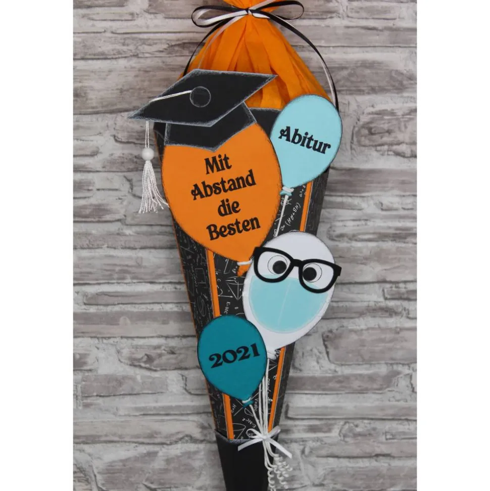 Je nach Bestand können kleine Details wie Schmucksteine, Schleifenband, Kordel usw.in Art und Farbe variieren, aber immer passend zu Schultüte.