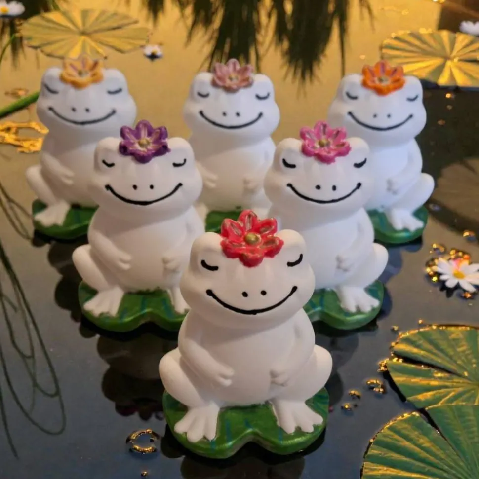 Jeder Frosch wurde von Hand mit Acrylfarbe farblich gestaltet und nicht versiegelt. Nur für den Innenbereich geeignet.