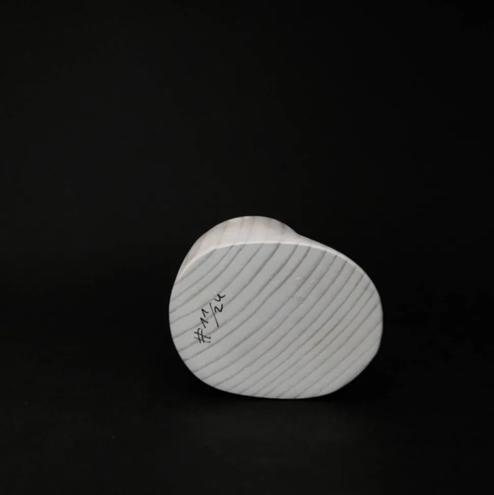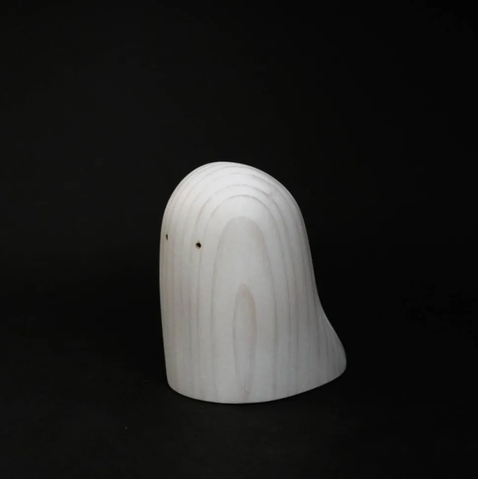 Es ist handgefertigt aus Fichtenholz und mit weißpigmentiertem natürlichen Holzöl behandelt. Die Augen wurden ganz am Ende mit einem Brennstab eingebrannt.