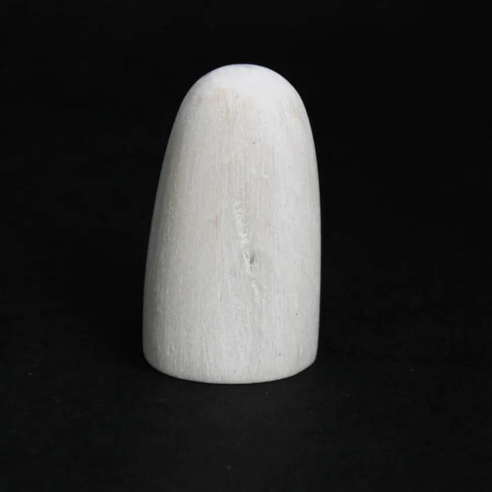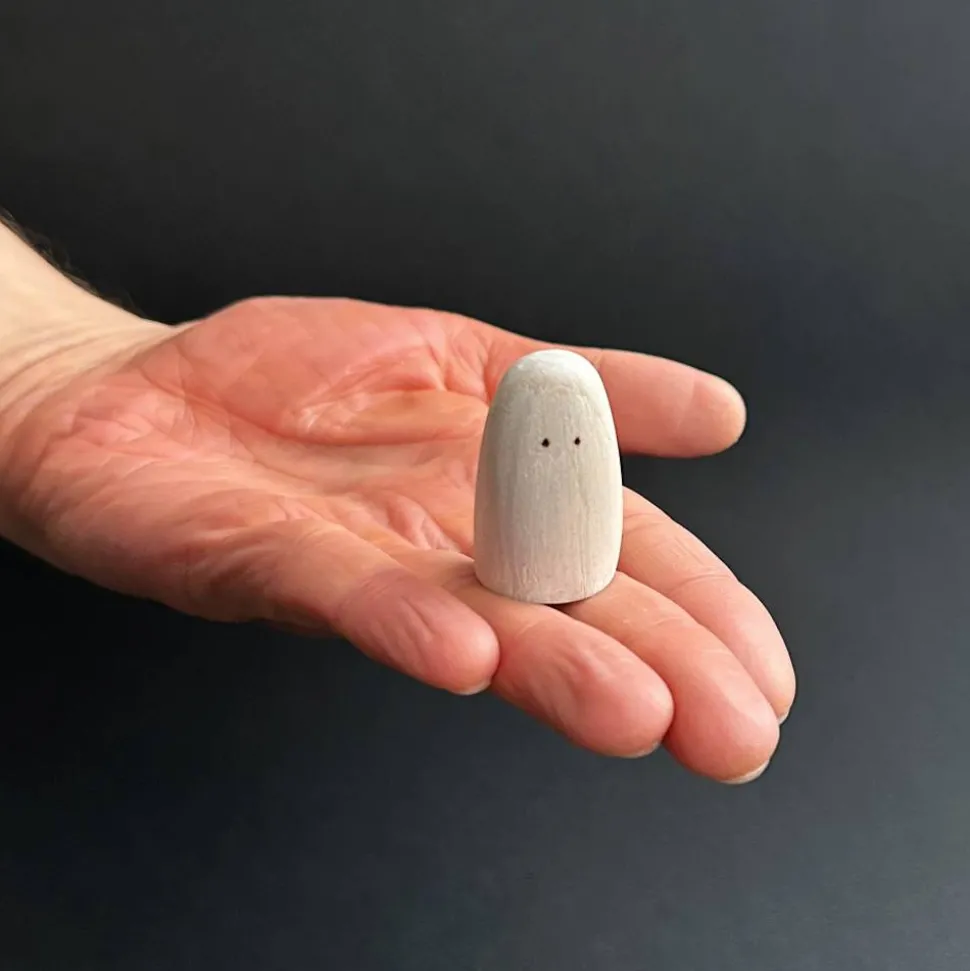 Es ist handgefertigt aus Weißbuchenholz und mit weißpigmentiertem natürlichen Holzöl behandelt. Die Augen wurden ganz am Ende mit einem Brennstab eingebrannt.