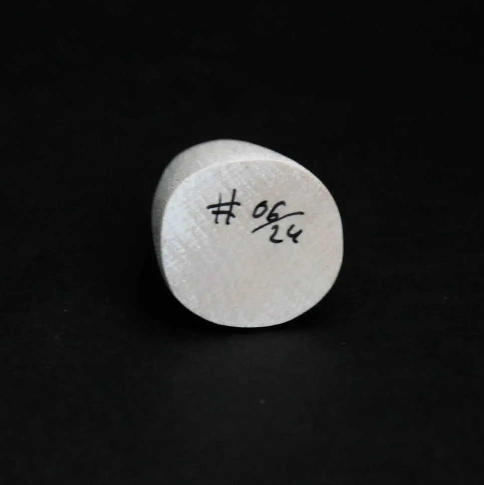 Es ist handgefertigt aus Weißbuchenholz und mit weißpigmentiertem natürlichen Holzöl behandelt. Die Augen wurden ganz am Ende mit einem Brennstab eingebrannt.