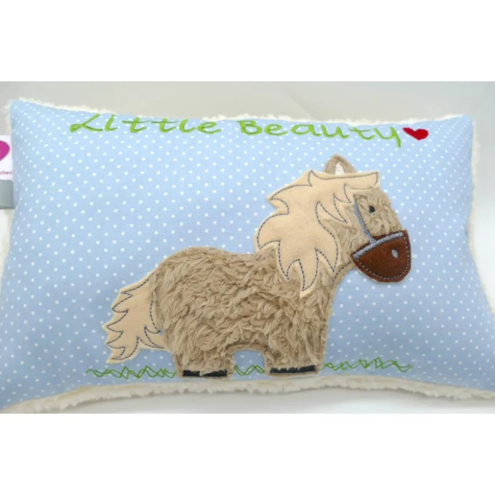 Aufwendig und mit viel Liebe zum Detail genähtes und gesticktes Mini-Kissen