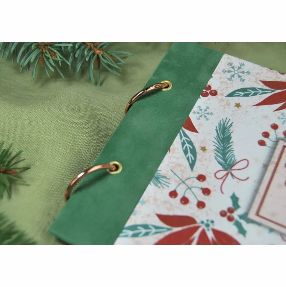Das Cover wird mit einem hübschen botanischem Motiv bedruckt. Pflanzen der Weihnachtszeit, wie Tannenzweige, Stechpalme und Weihnachtsstern wechseln sich im Motiv mit Sternen und Schneeflocken ab und werden mit beigen Sprenkeln und Sternchen im Vintage-Look veredelt.
