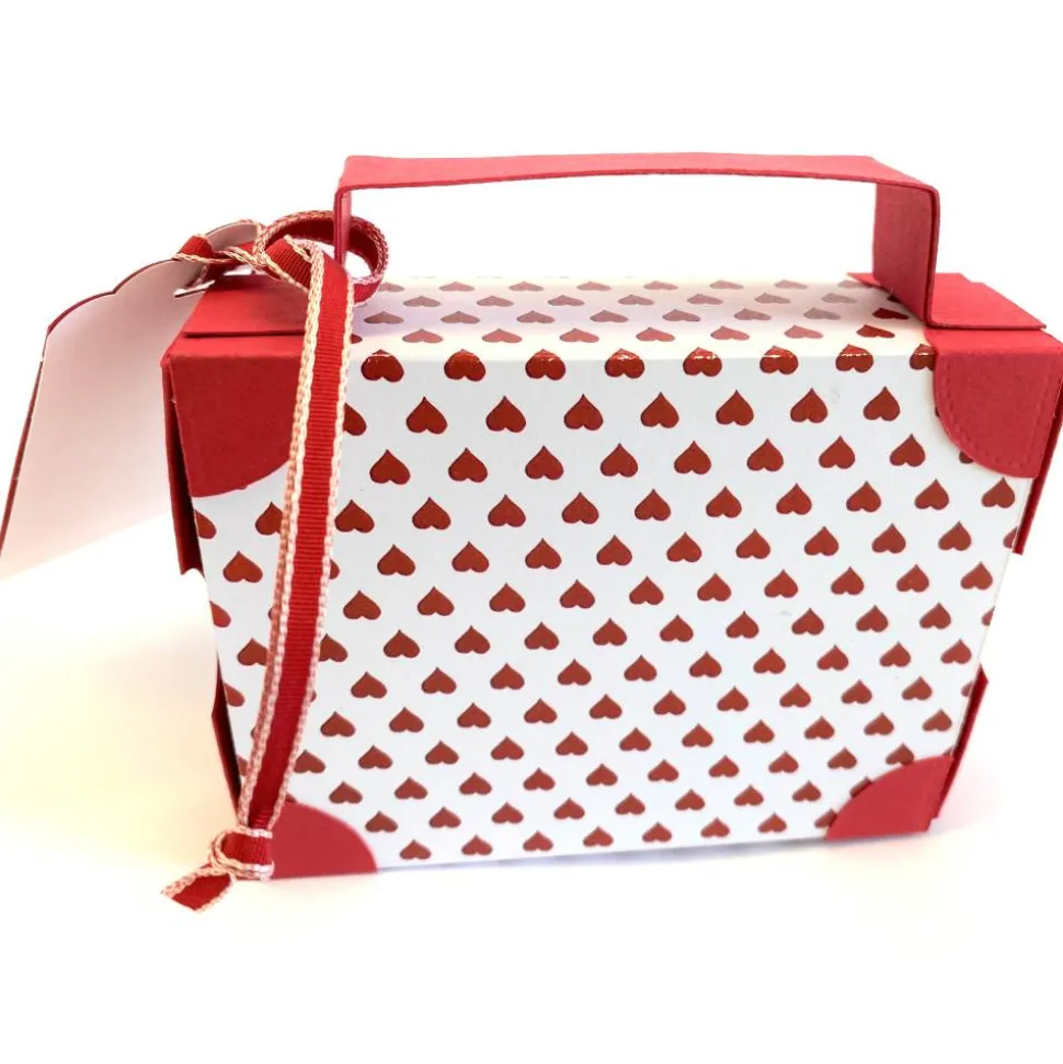 Die innere Schachtel besteht aus Deckel und Boden und kann vom Beschenkten weiterverwendet werden. Zwei unbeschriftete Kofferanhänger bieten Platz für deinen persönlichen Gruß.