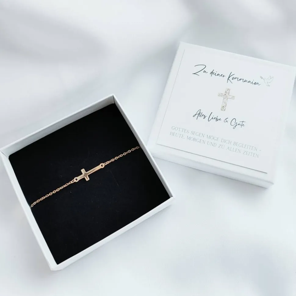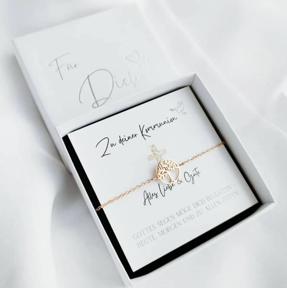 Kommunion Geschenk für Mädchen, Armband mit Kommunion Karte und Geschenkbox.