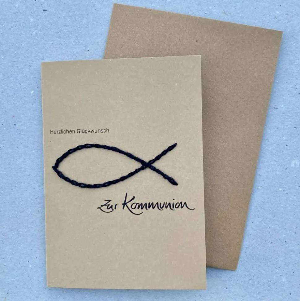 Papier mit aufgesticktem schwarzen Fisch