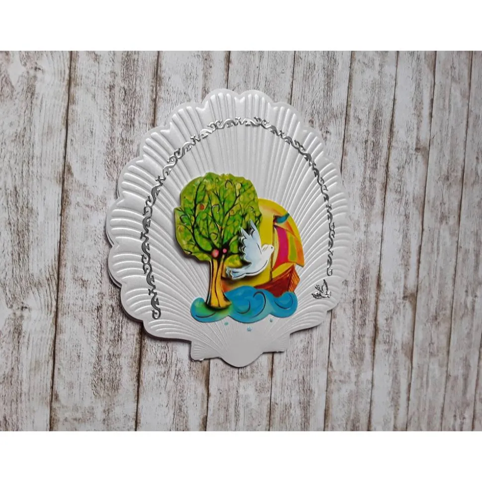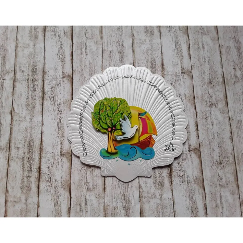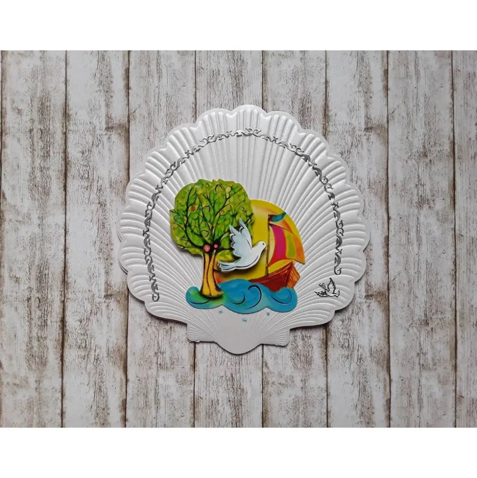 Kommunionkarte Baum , weiße Taube, Segelboot