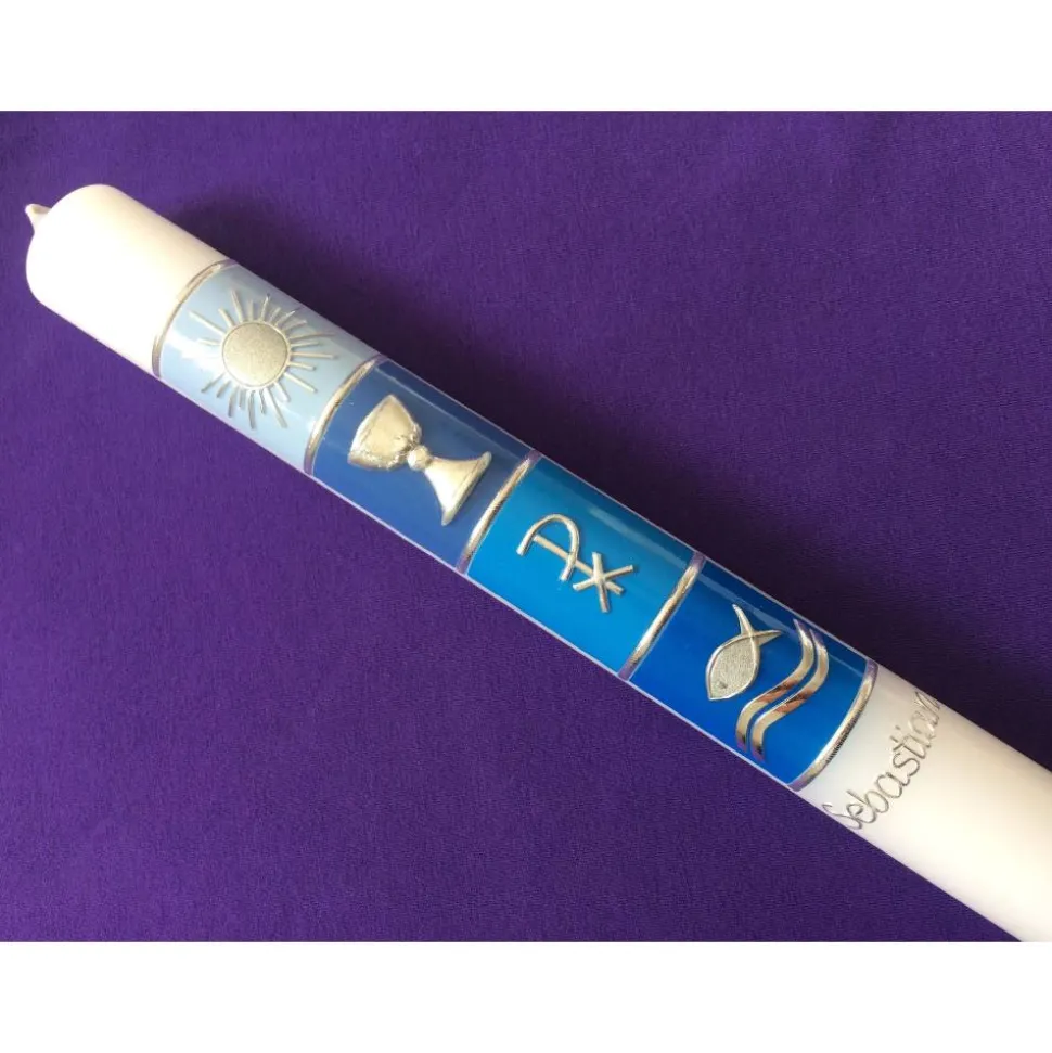 Die Kommunionkerze kann Ihren Wünschen entsprechend beschriftet werden.