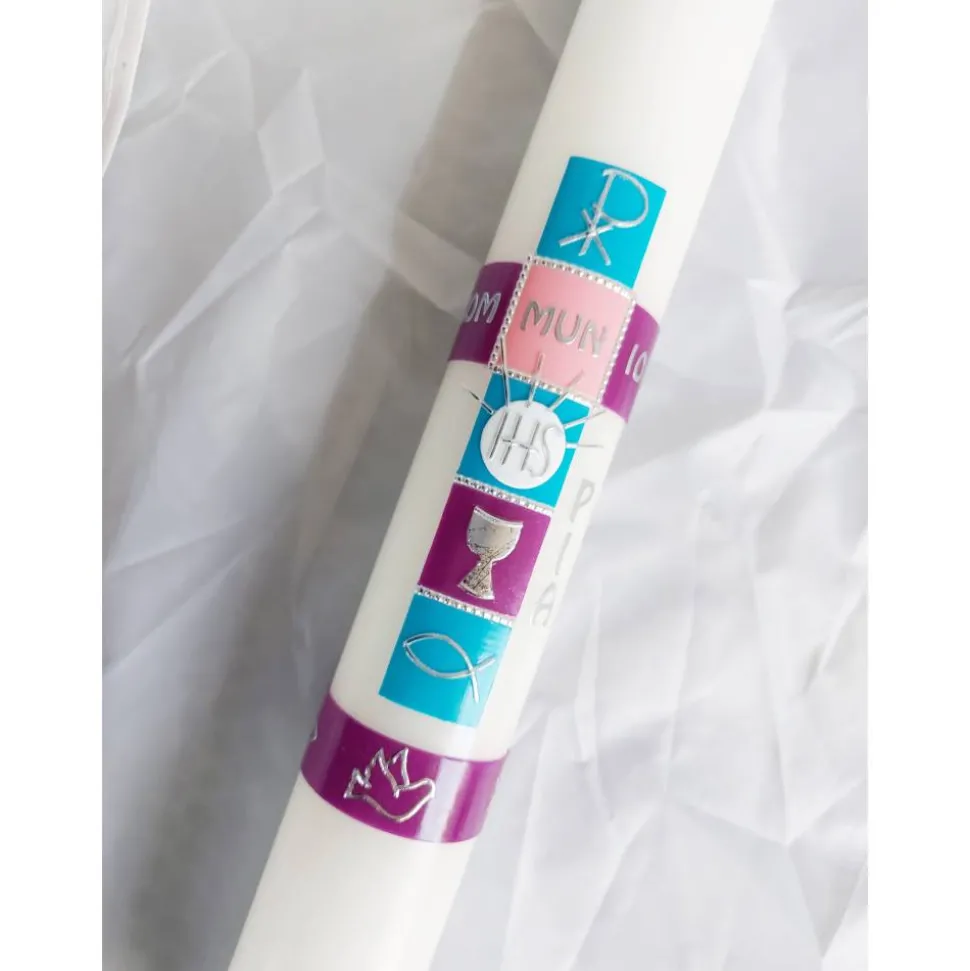 Die Kommunionkerze können wir auf Wunsch auch in anderen Farben gestalten.