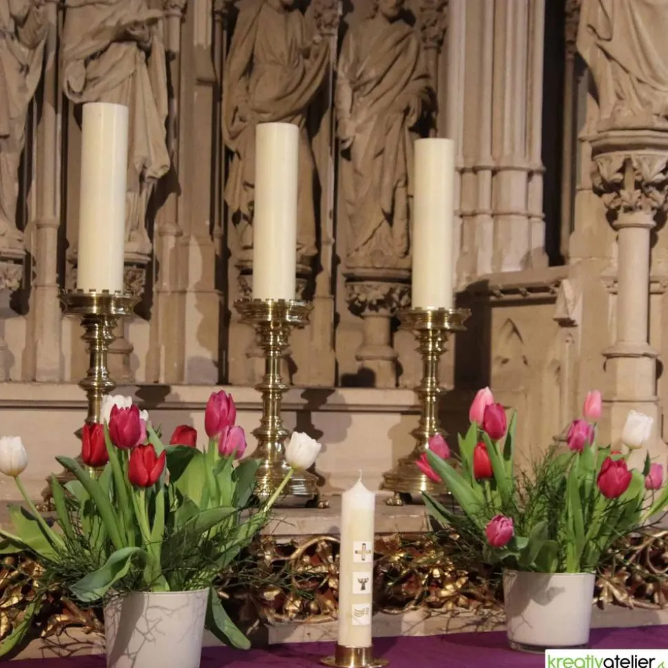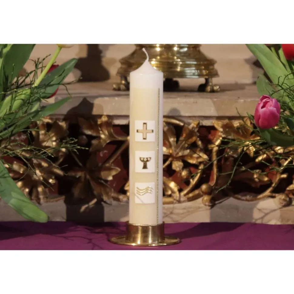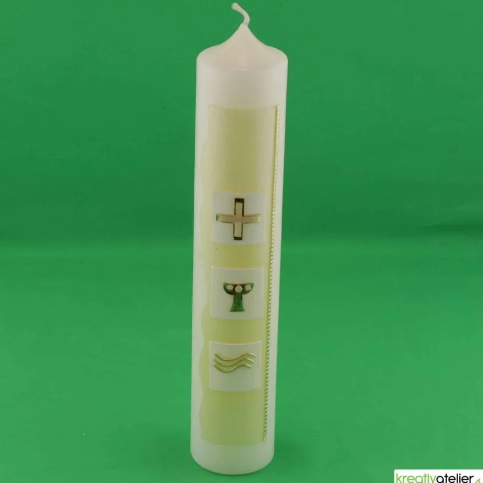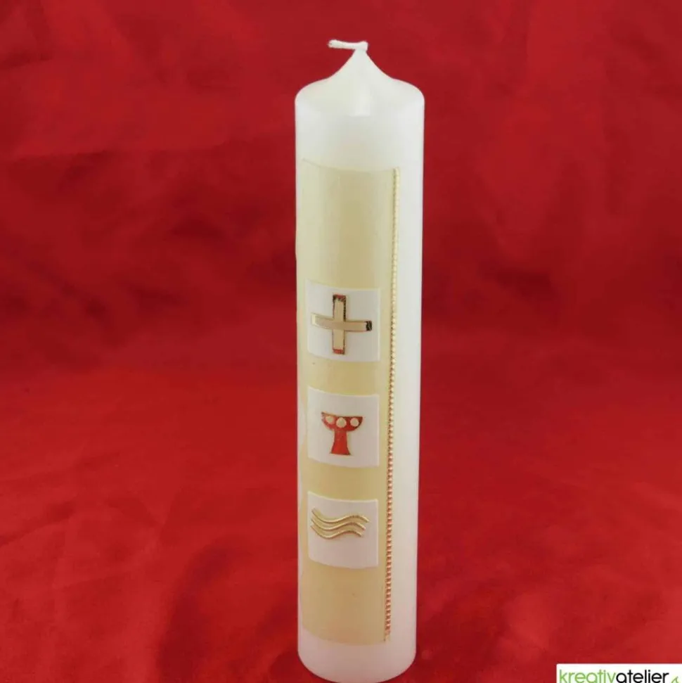 Diese Kommunionkerze wird in meinem Atelier individuell für Sie gefertigt. Als Rohling verwende ich ausschließlich Qualitätskerzen mit RAL-Zertifikat, die in Deutschland nach traditionellen Verfahren gezogen werden.