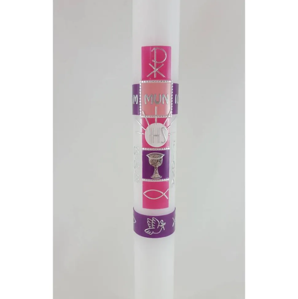 Die Kommunionkerze können wir auf Wunsch auch in anderen Farben gestalten.
