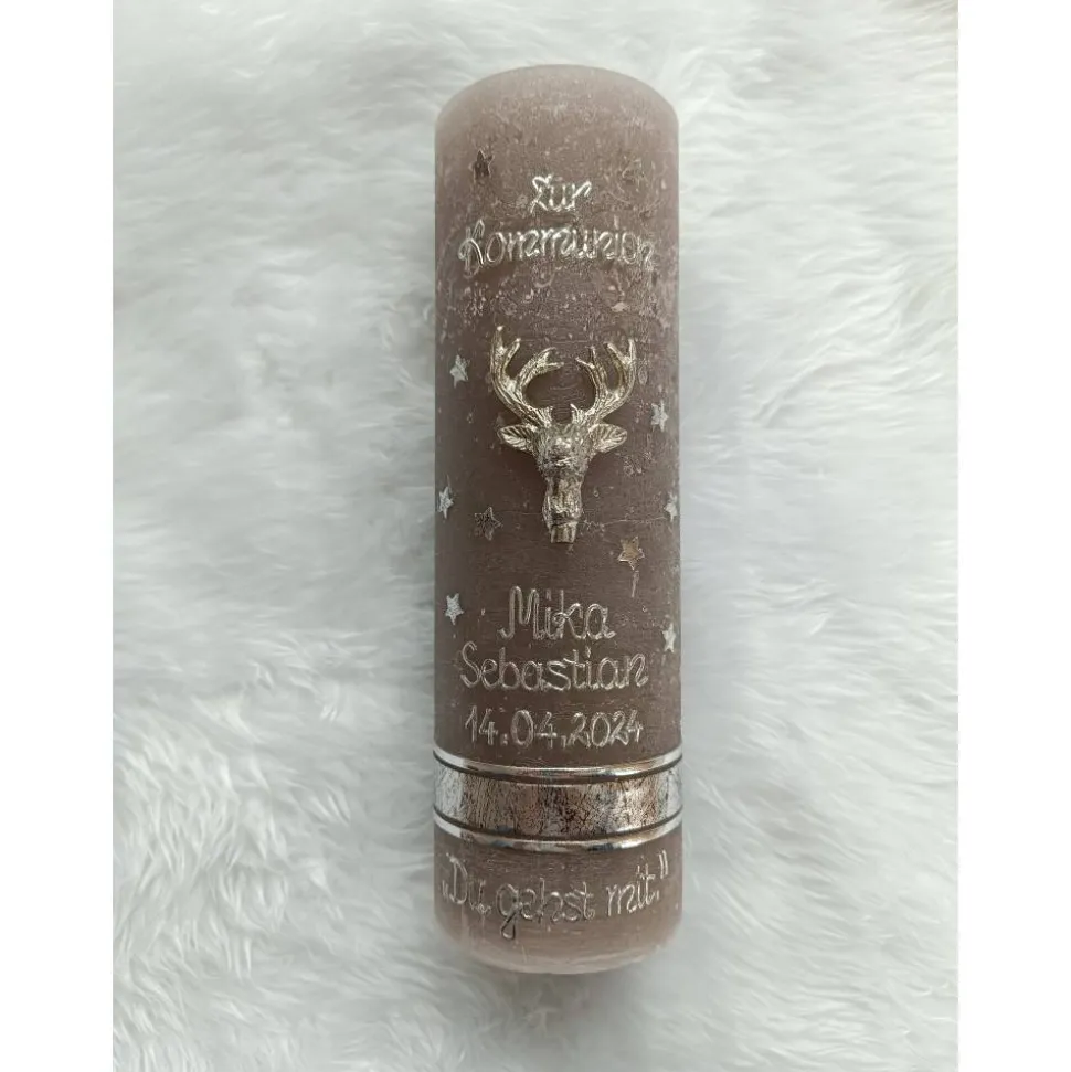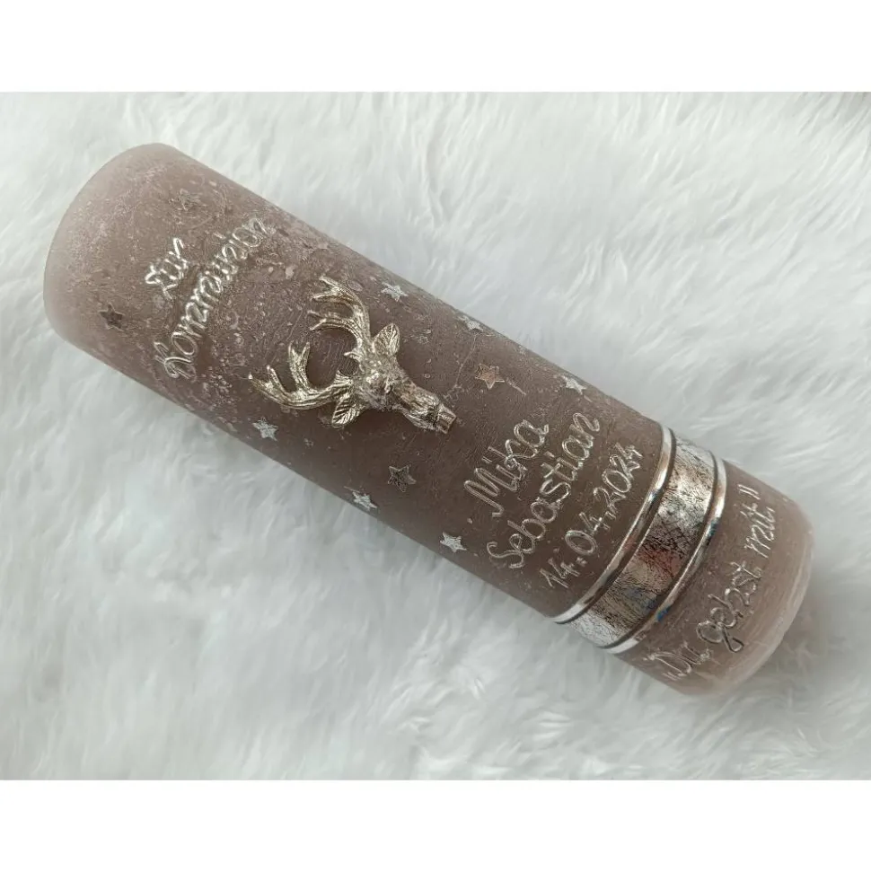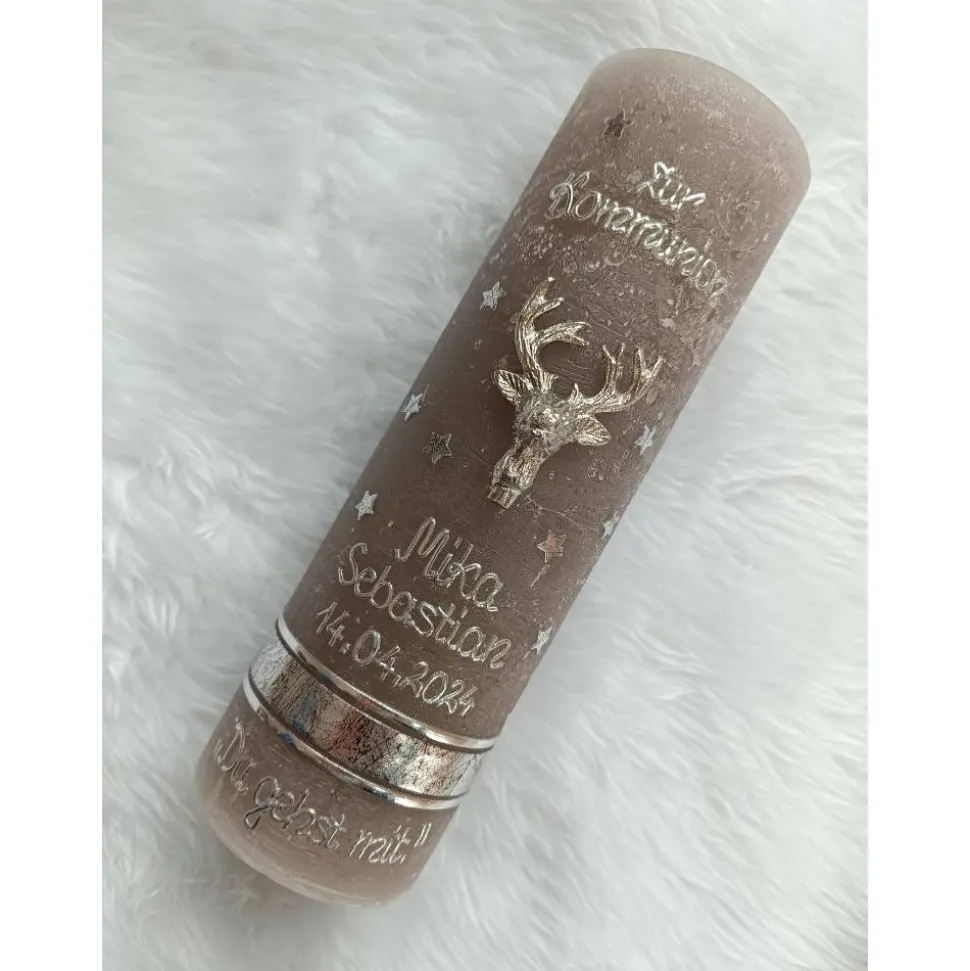 Die Verzierung auf der Kerze wird von mir in liebevoller Handarbeit für Sie erstellt.